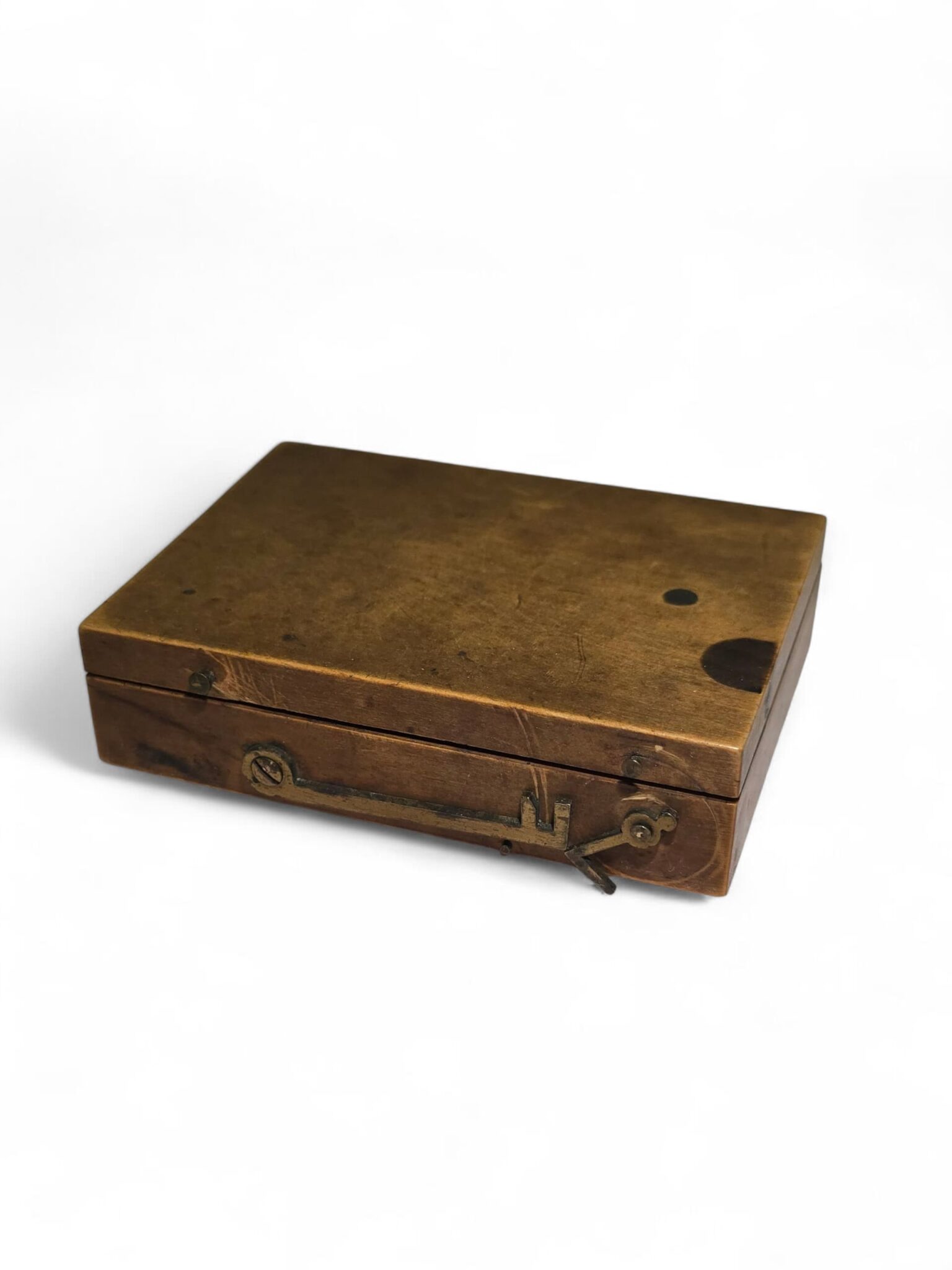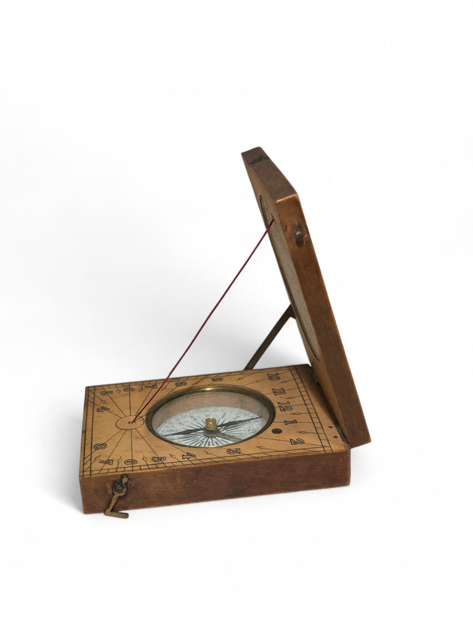 This compact timekeeping instrument exemplifies the practical elegance and craftsmanship of traditional scientific tools from the period.