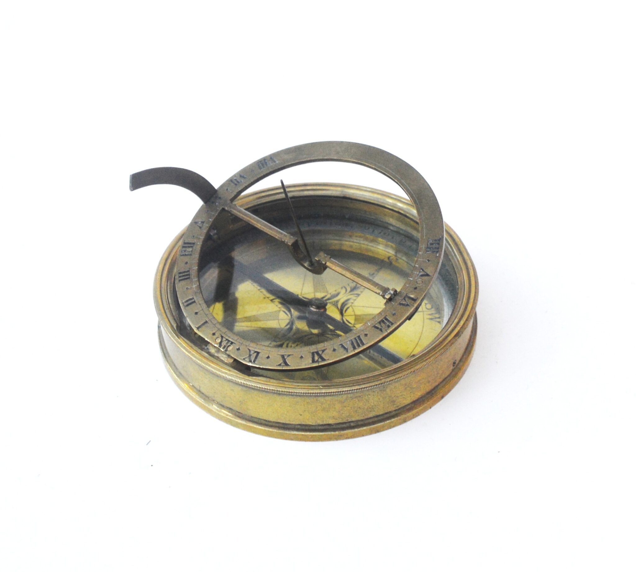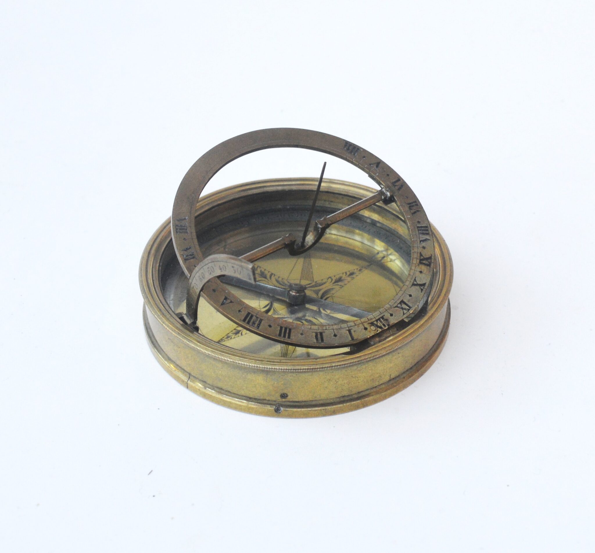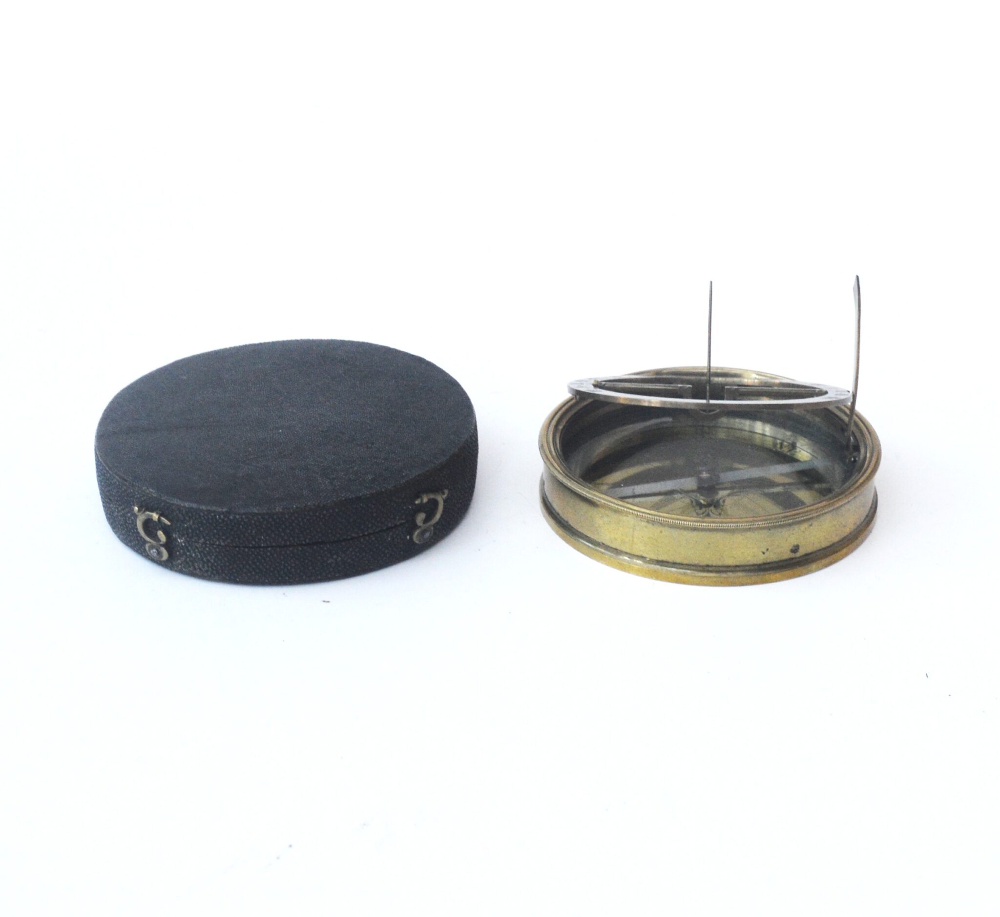 The inner base has a large engraved compass rose and is signed, ‘Dollond, London’ with a raised outer silvered scale reading from 0 – 90 – 0 – 90 etc.
