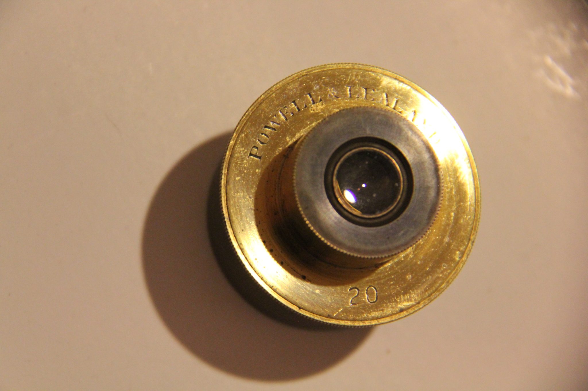 Two fine monocular eyepieces (OD 36.5 mm.), signed and marked 10 and 20 (with caps).