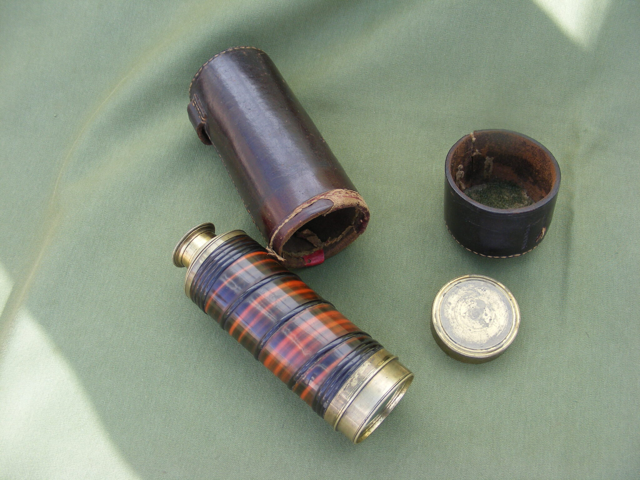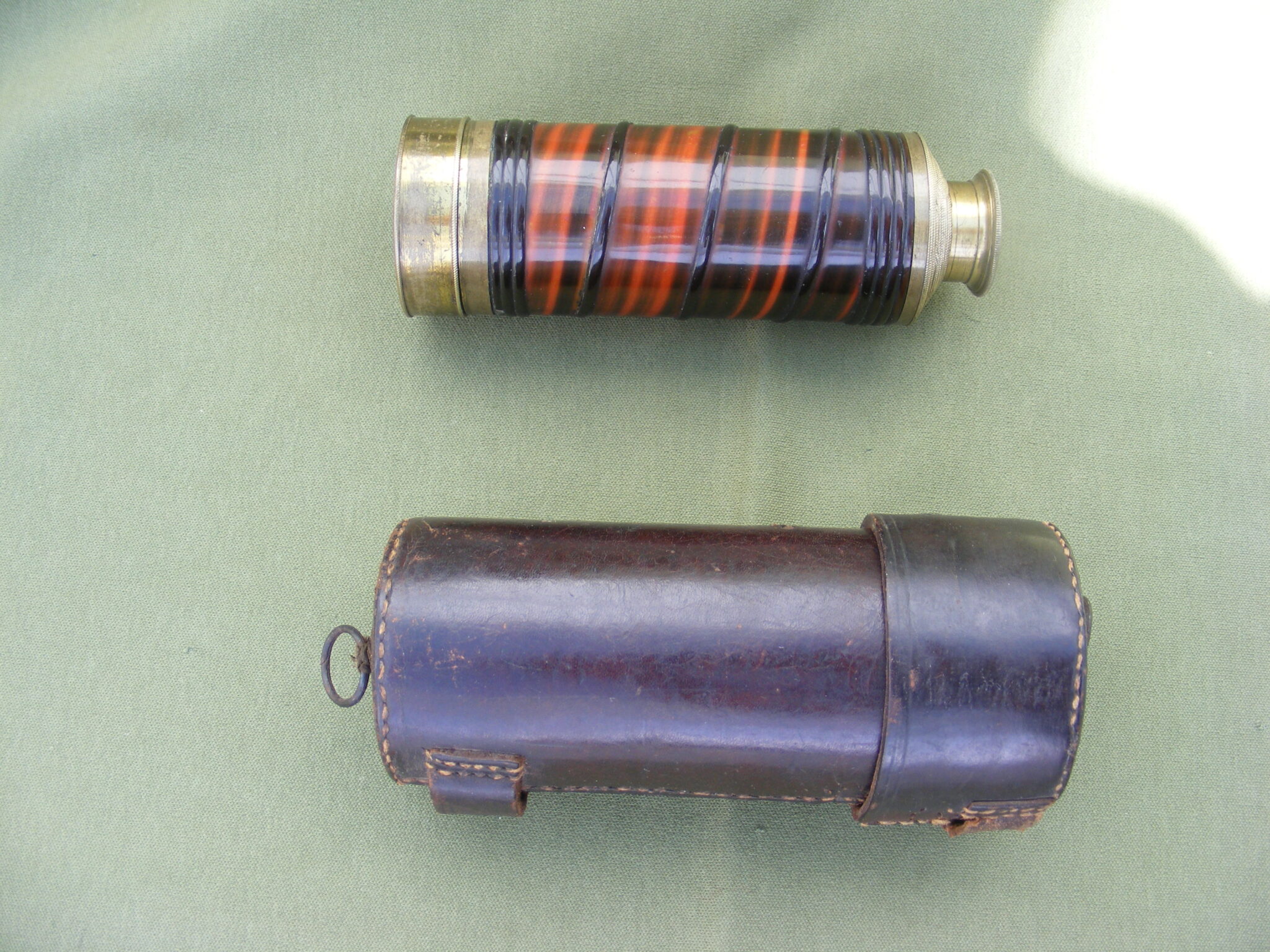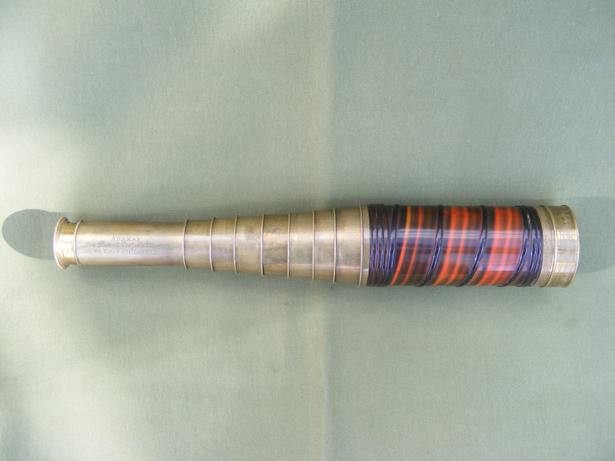 VERY GOOD EXAMPLE OF ADAMS EIGHT DRAW TELESCOPE COVERED IN VERY ATTRACTIVE COLOURED BALEEN. SIGNED: ADAM'S NEW PATENT PORTABLE TELESCOPE. 60 FLEET STREET, LONDON. CLOSED 5.1/2" OPEN 29" INCHES.