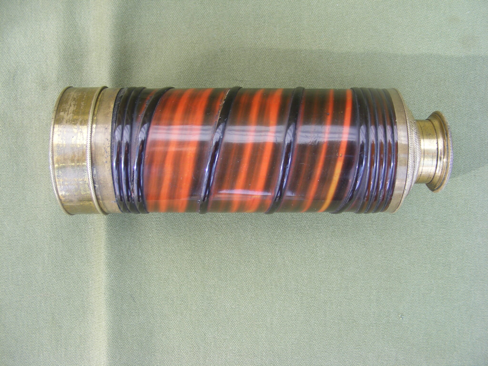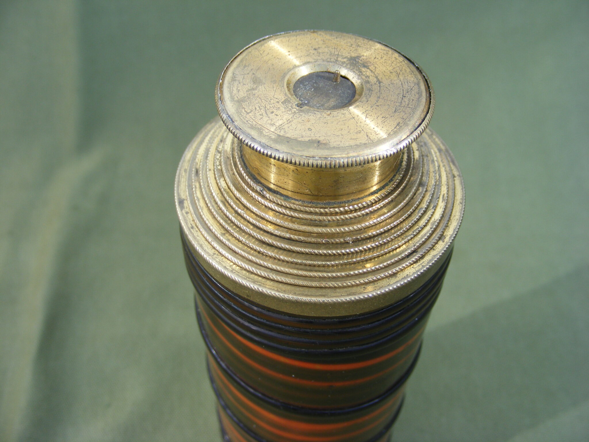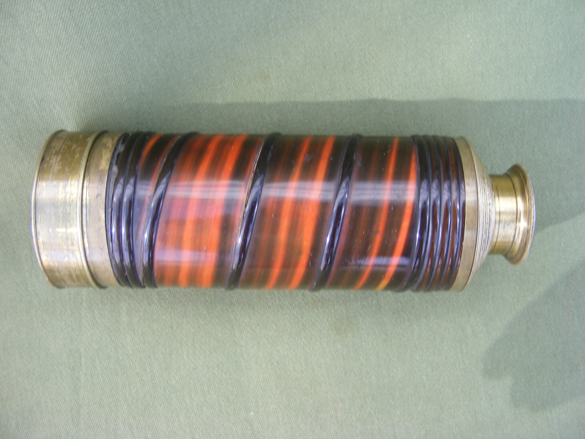 VERY GOOD EXAMPLE OF ADAMS EIGHT DRAW TELESCOPE COVERED IN VERY ATTRACTIVE COLOURED BALEEN. SIGNED: ADAM'S NEW PATENT PORTABLE TELESCOPE. 60 FLEET STREET, LONDON. CLOSED 5.1/2" OPEN 29" INCHES.