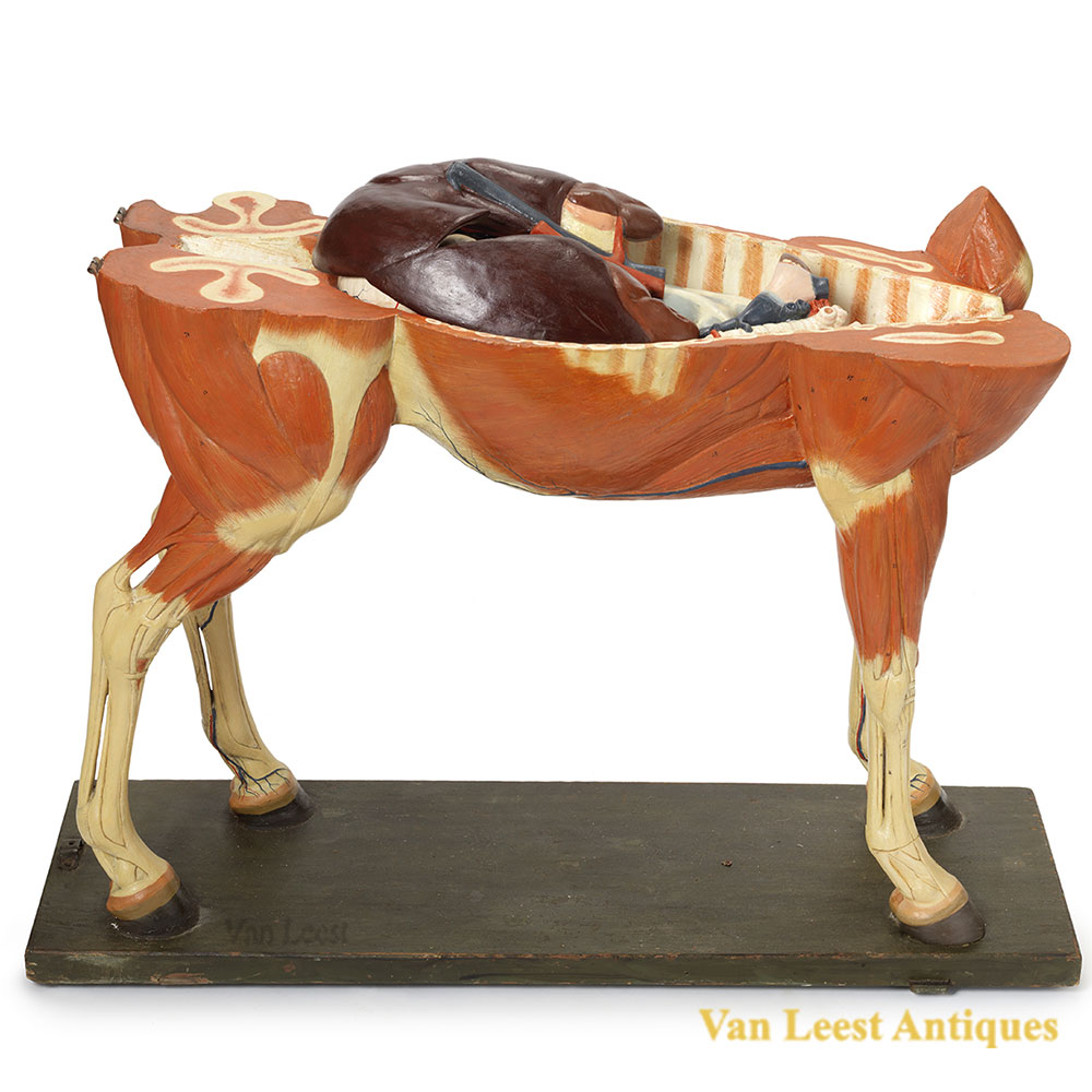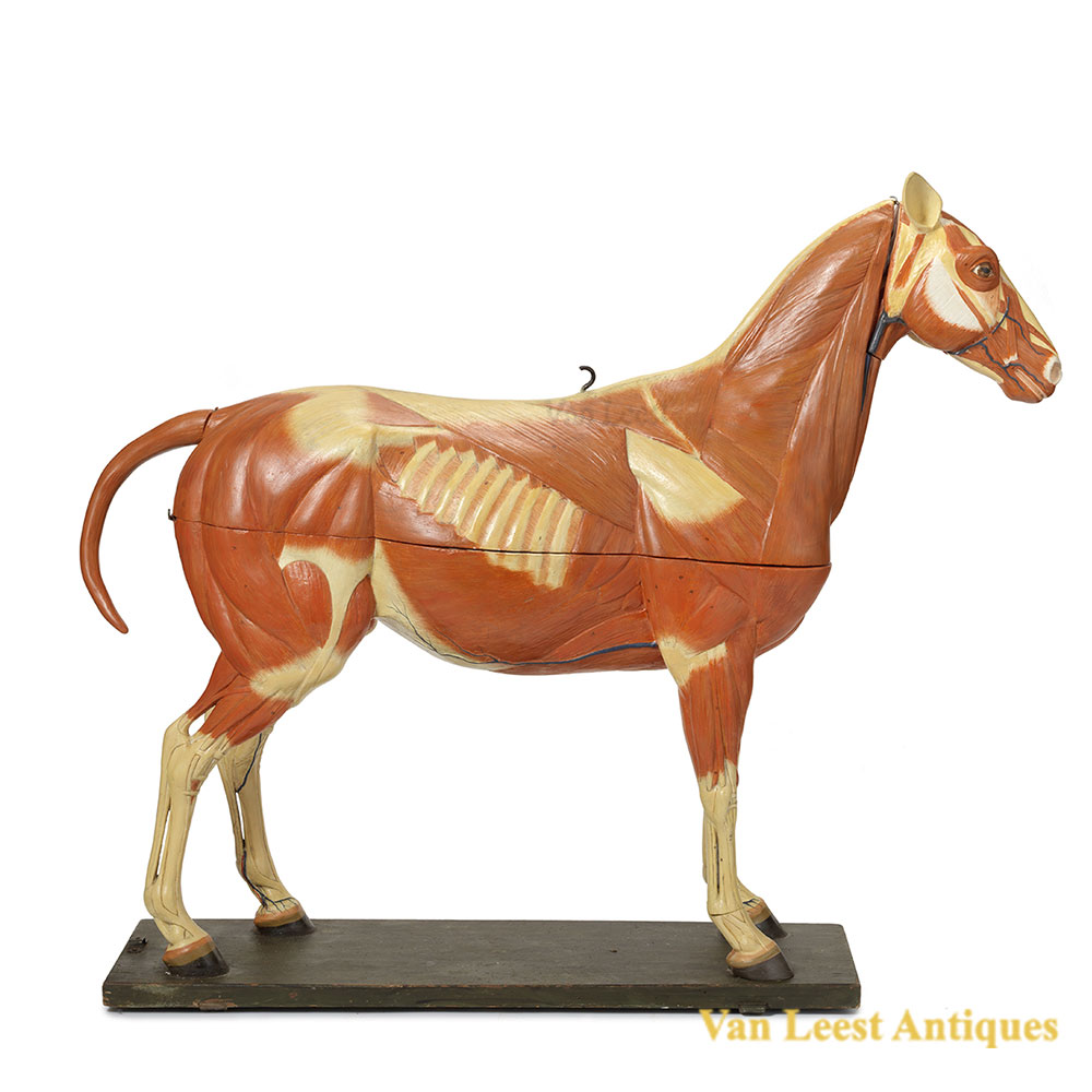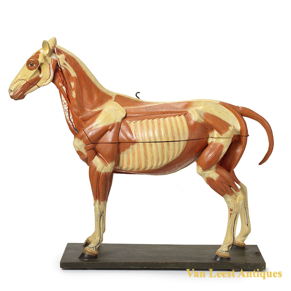 An Anatomical horse model by Somso. A large c. 1920 German anatomical model of a horse probably by Somso. Hand painted papermaché and plaster on rectangular wooden base, not signed The model consist of 10 parts.