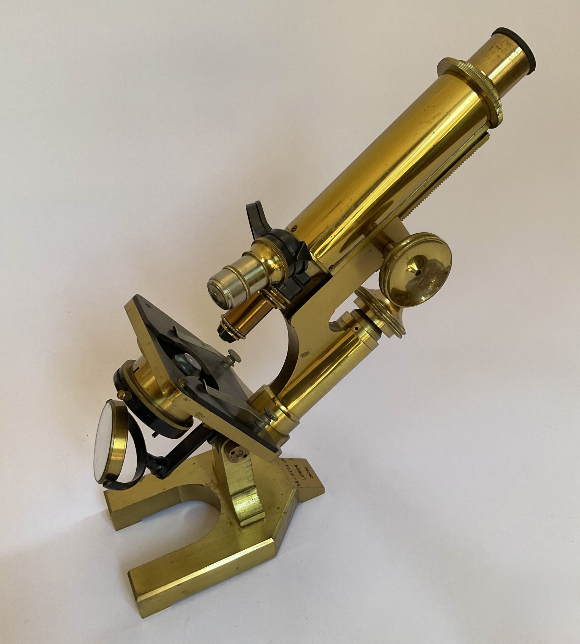R & J Beck occupy an especially important place in the history of the British microscope manufacturing with its beginning established in London, by Richard Beck (1827 – 1866) in association with James Smith (1800 – 1873), and later to be joined by his brother Joseph Beck. Richard and Joseph Beck were nephews of Joseph Jackson Lister, who was a respected British optician and physicist who experimented with achromatic lenses and perfected an optical microscope. In commissioning the manufacture of his improved microscope, Lister worked with James Smith, an employee of the instrument-making firm of William Tulley, to create the stand. James Smith went on to establish his own optical instruments workshop in 1837. Through this relationship, Lister arranged for his nephew, Richard Beck to be an apprentice under Smith in 1843. In 1847, James Smith entered into partnership with Richard Beck, and the company was re-named Smith & Beck. In 1854, the company was renamed to Smith, Beck and Beck, as Richard Beck’s brother Joseph Beck joined the company in 1851. James Smith retired in 1865 and the company became R & J Beck and this name lasted for long time. In 1866, Richard Beck died at an early age of 39, and Joseph Beck carried on the business. In 1895 the company became a limited partnership (R & J Beck Ltd).