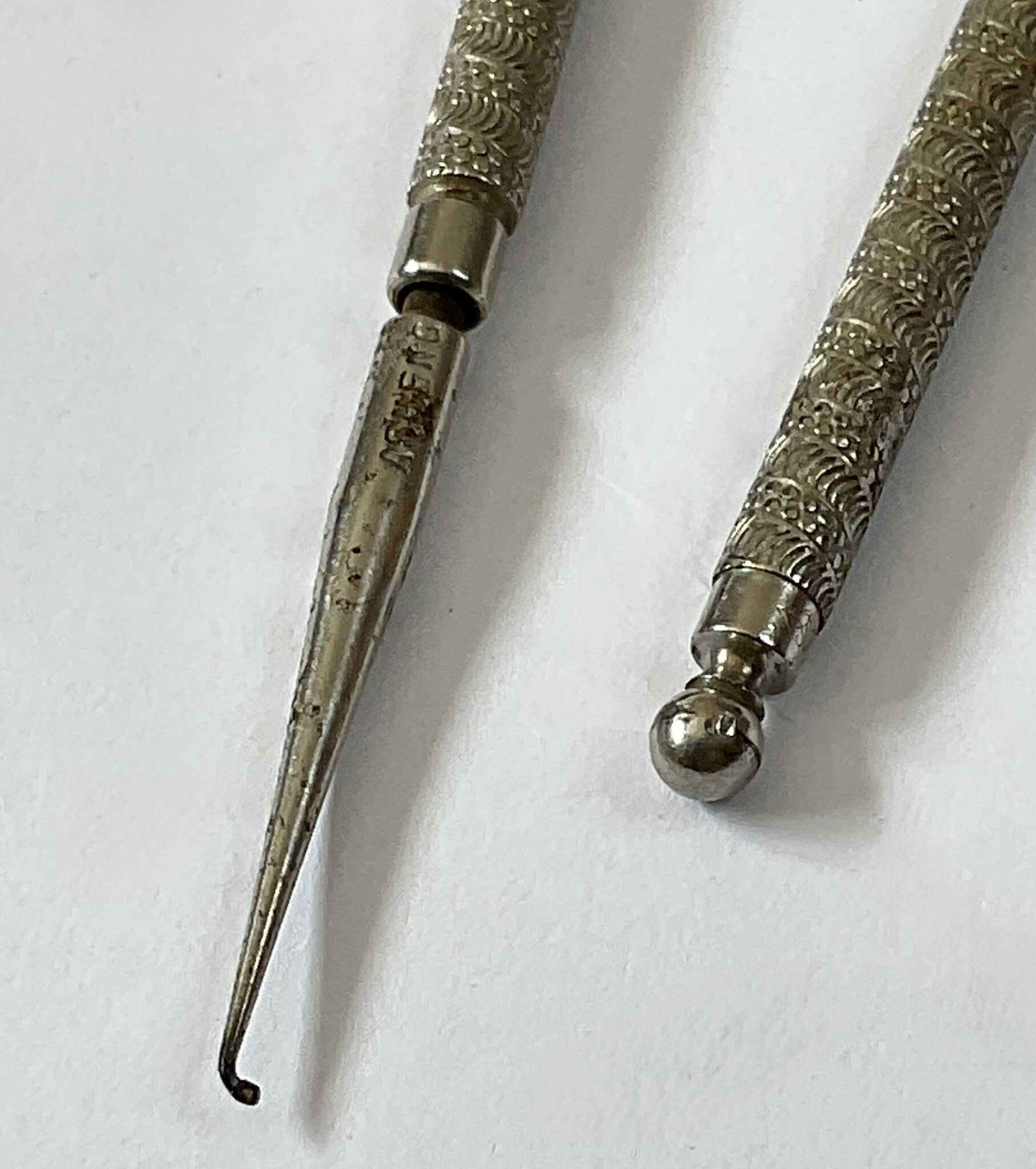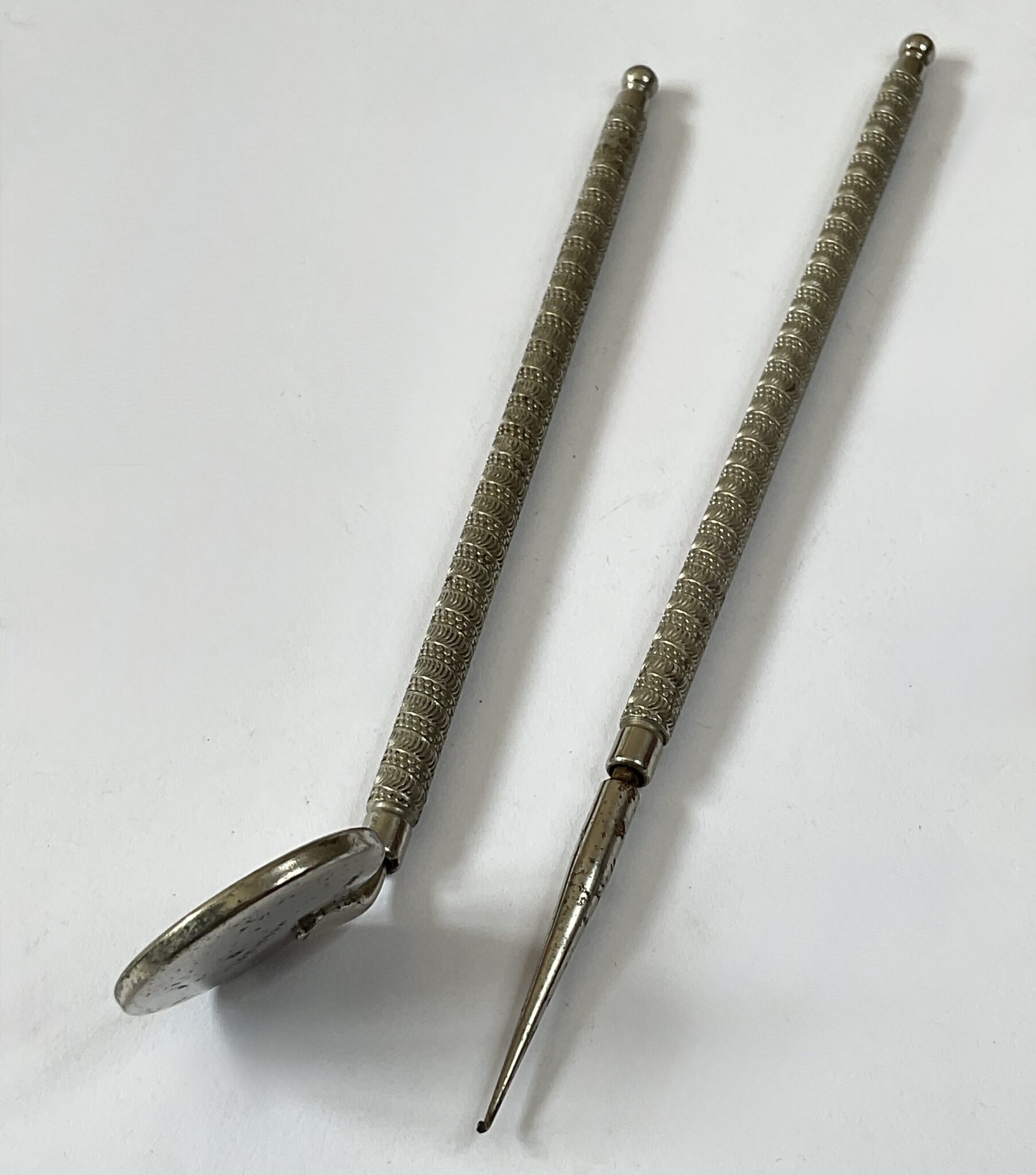 Antique dental instruments, mirror and probe.