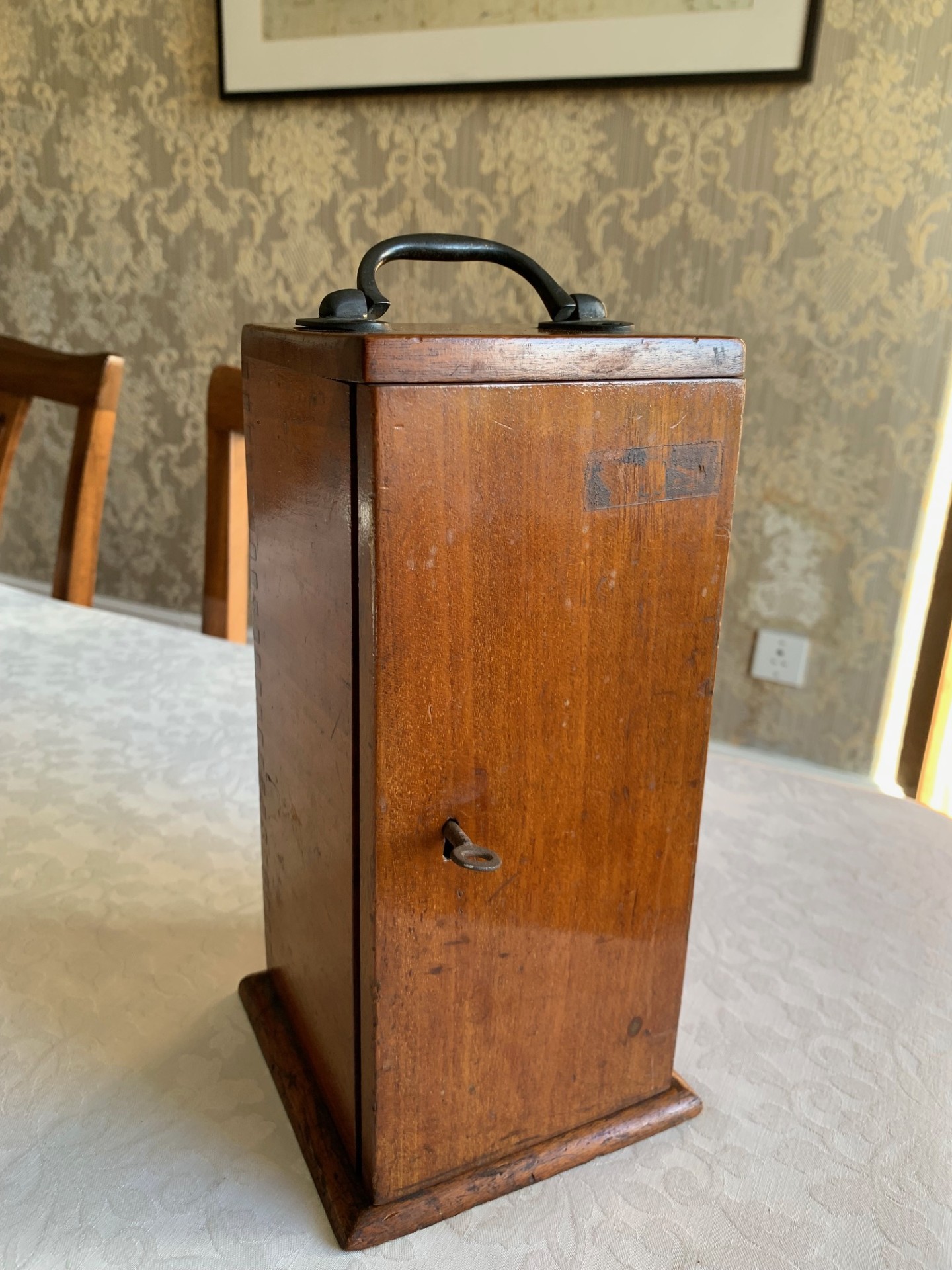 8) There is a nice hardwood case with the instrument that will be original, complete with a brass carry-handle and working lock & key.