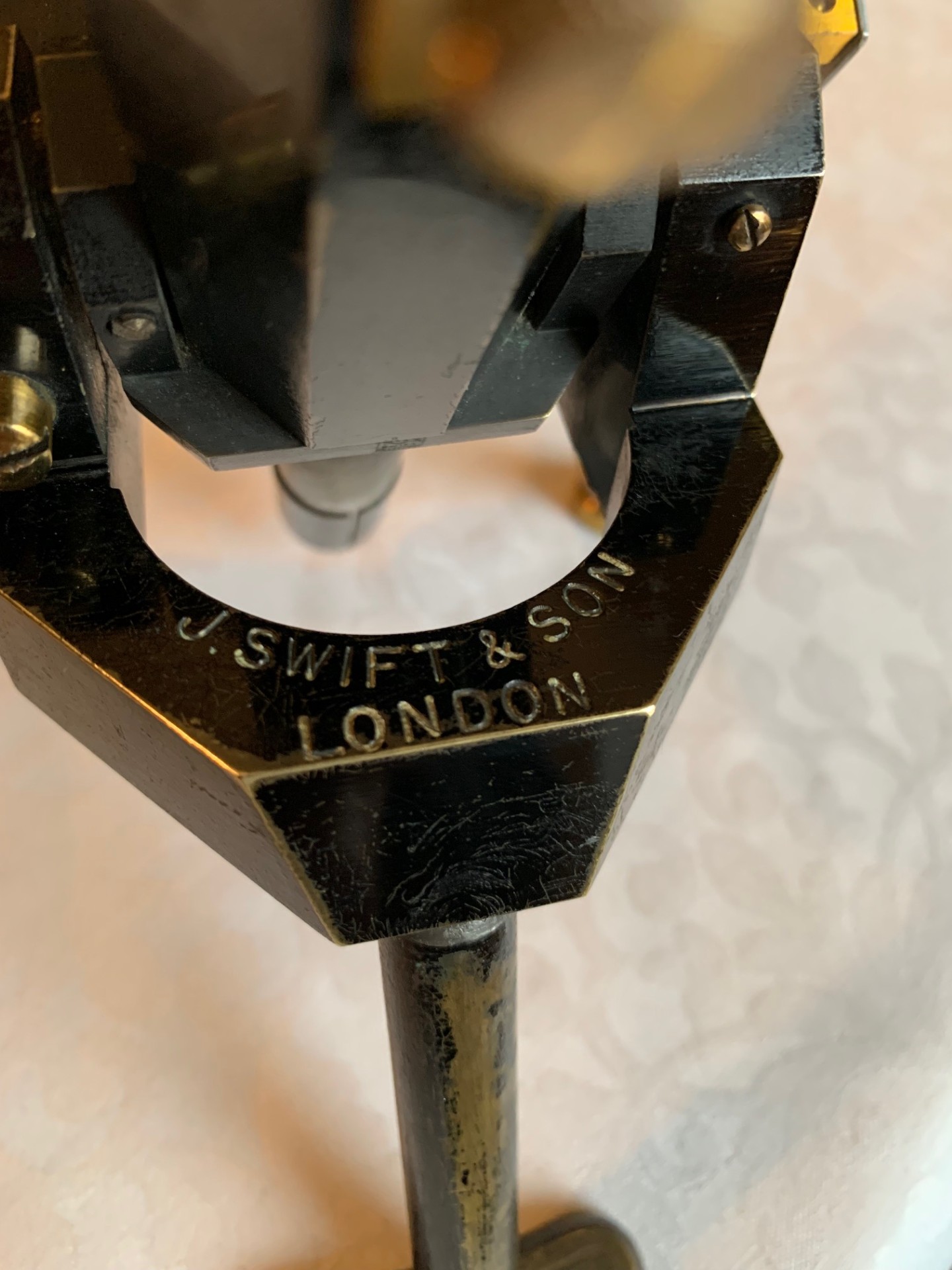 This example of a late Victorian Swift instrument is in an appealing time-worn cosmetic condition giving it an interesting patination and no doubt quite a back story. It’s a survivor from the last 125 years or so and the lacquered brass-work still catches the light as I hope the listing photos illustrate. The instrument’s look and feel is fairly solid in that’s it’s fashioned from solid brass, giving it a heavy feel and quite a presence when in use, with coarse focus and draw-tube fully extended.