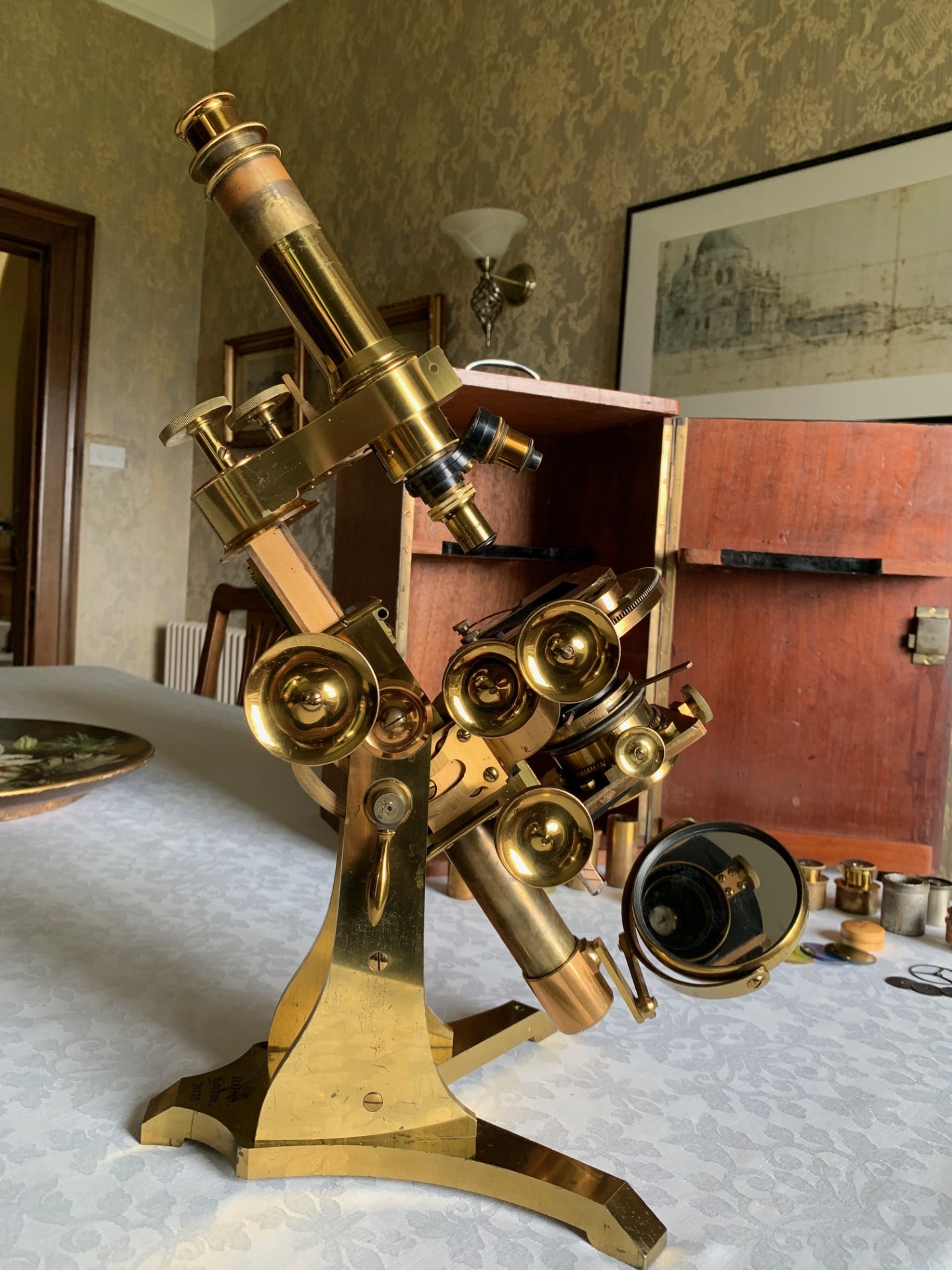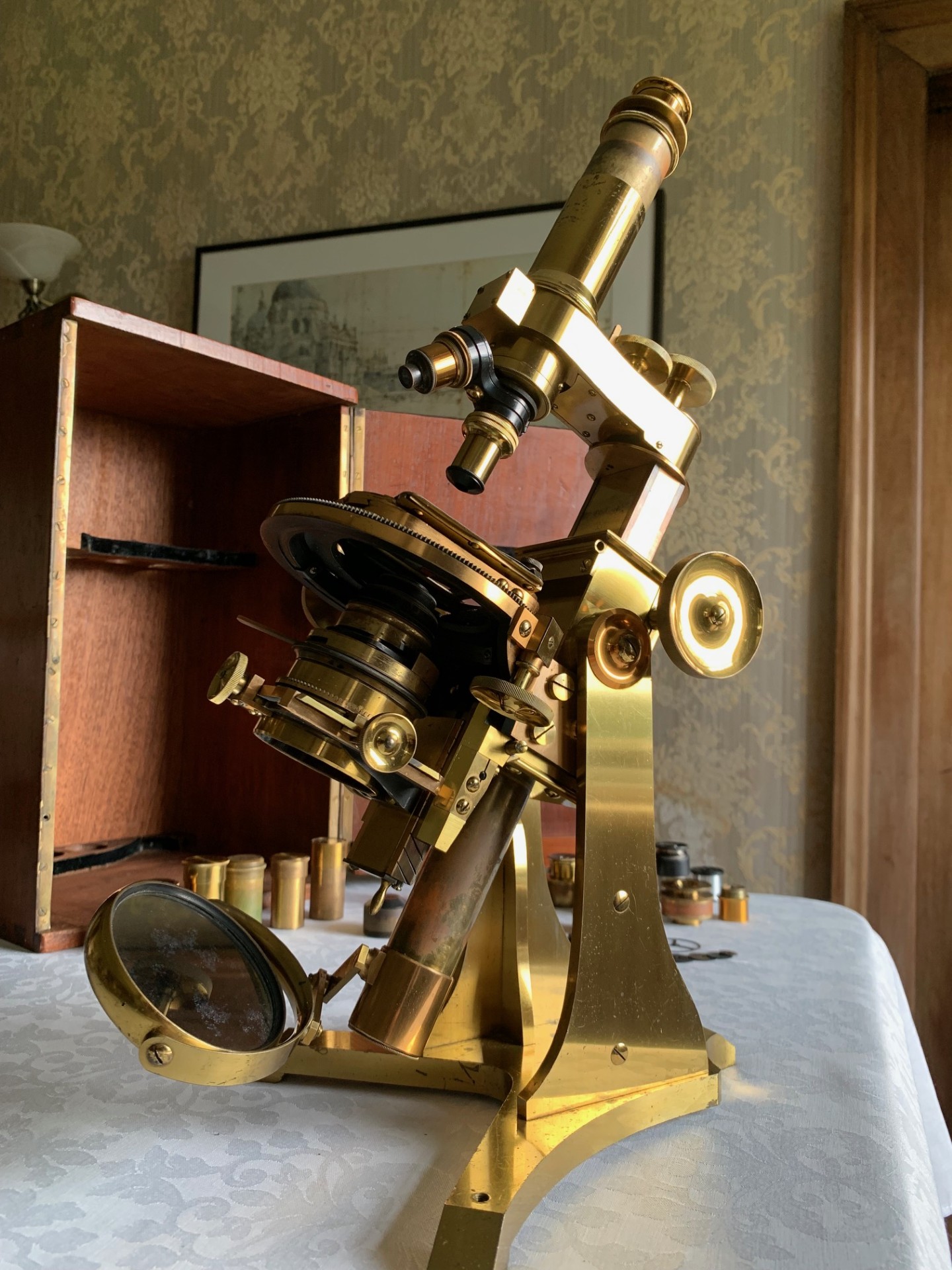 Owing to the heavy weight and delicacy of this antique microscope, it will be partially dismantled, carefully wrapped for shipping and dispatched by insured courier upon receipt of cleared funds.
