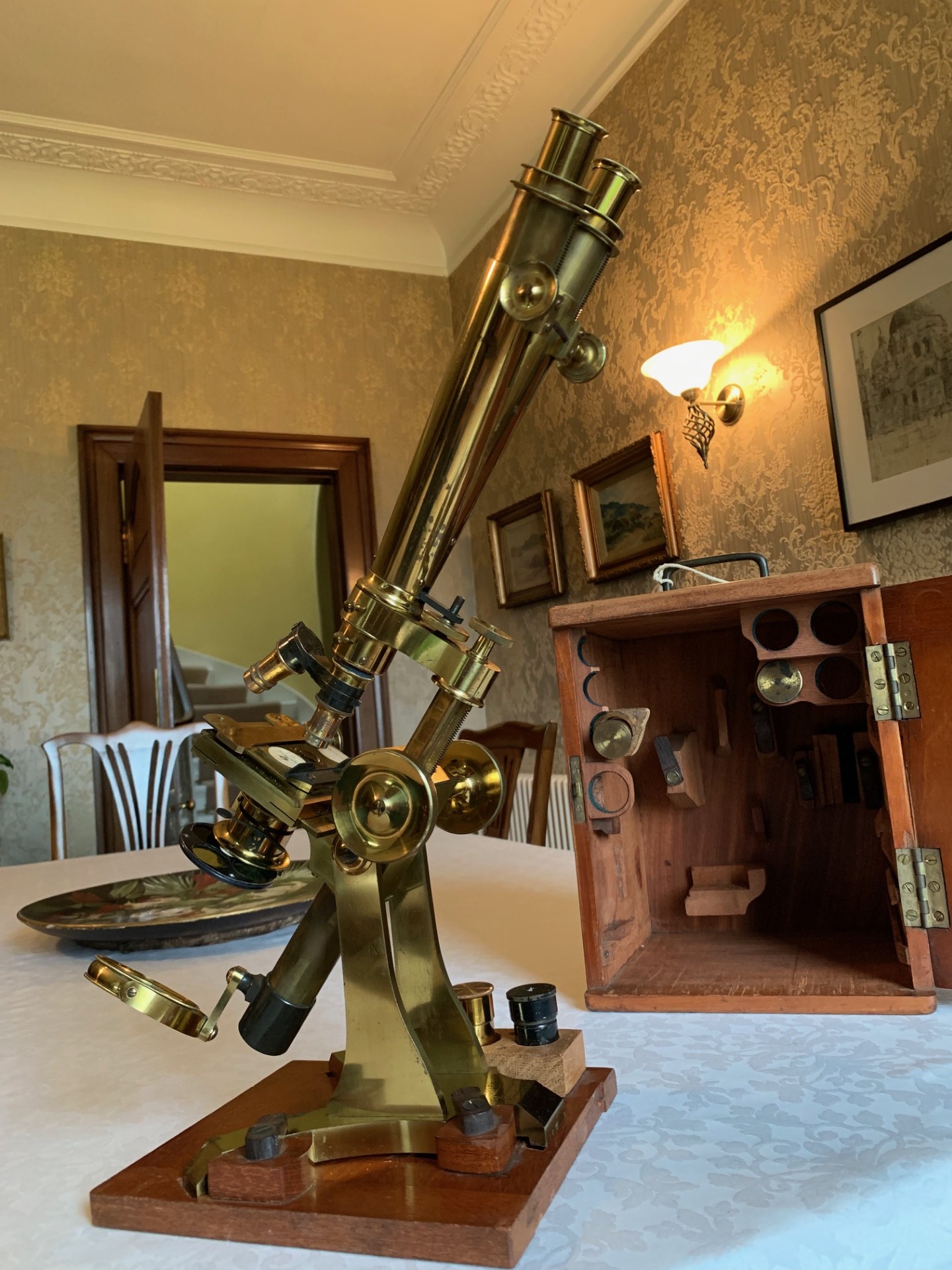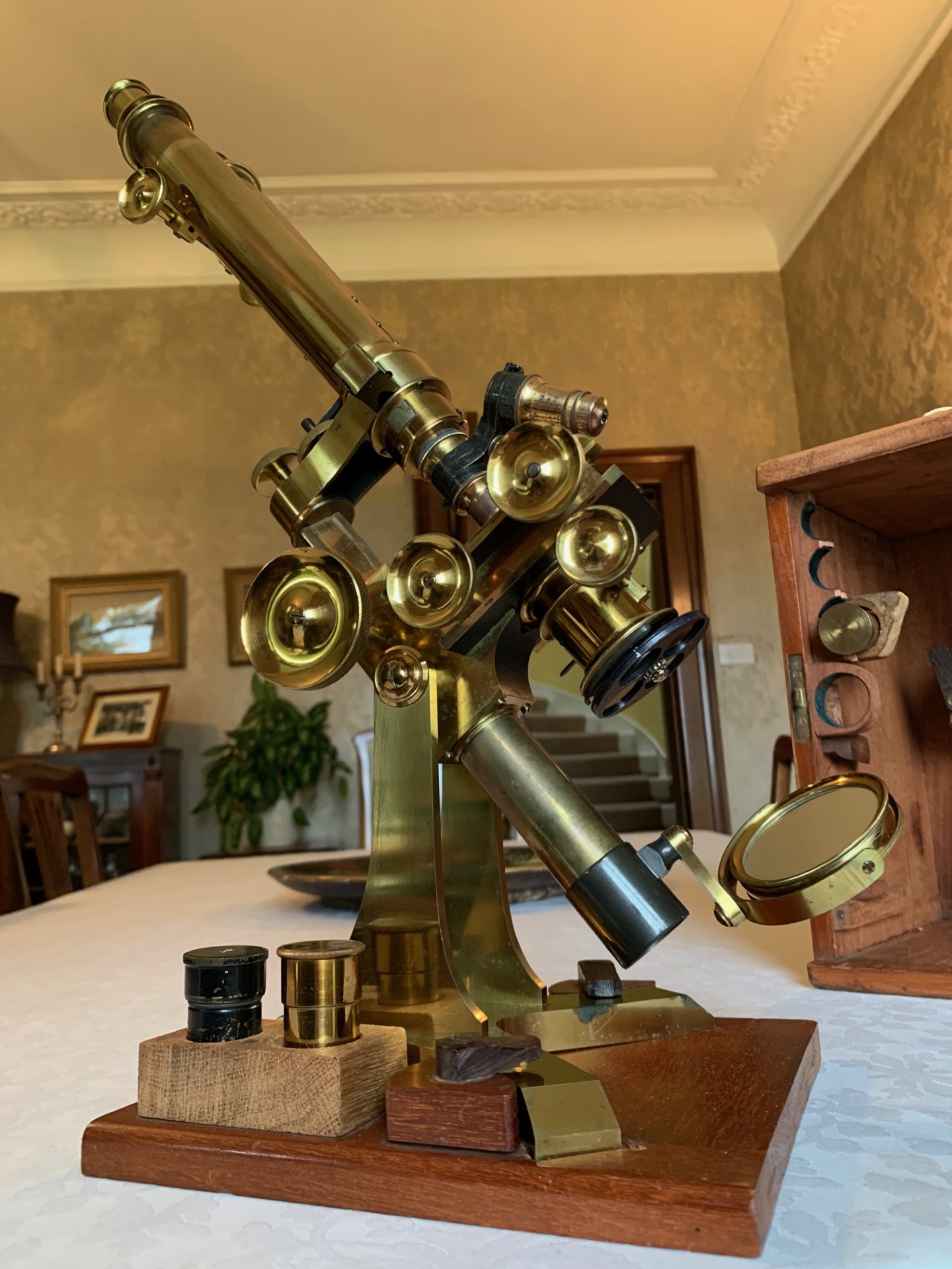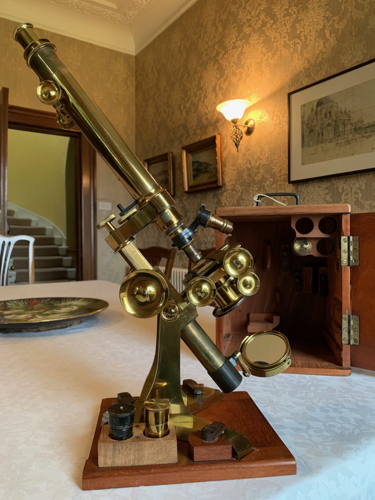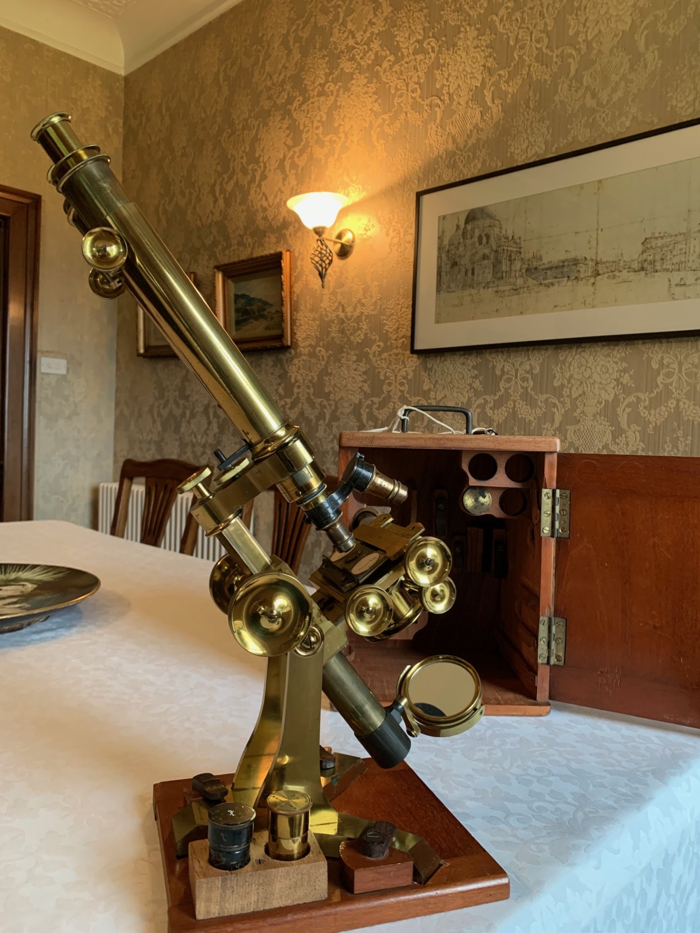 Owing to the weight and delicacy of this antique microscope and its case, it will be partially dismantled, carefully wrapped for shipping and dispatched by insured courier upon receipt of cleared funds.