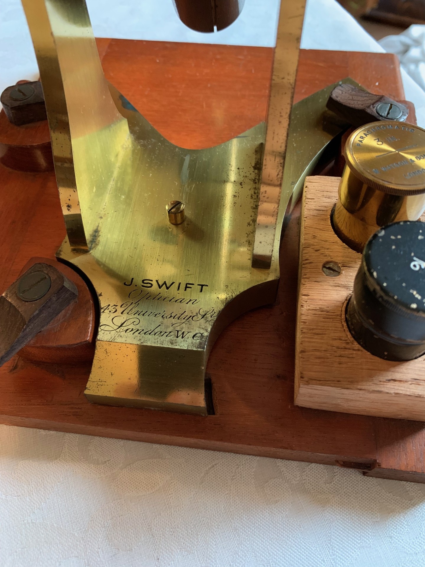 The firm James Swift were microscope makers trading from London, founded in 1853 by James Powell Swift, who was originally apprenticed to the well-known microscope maker Andrew Ross.
