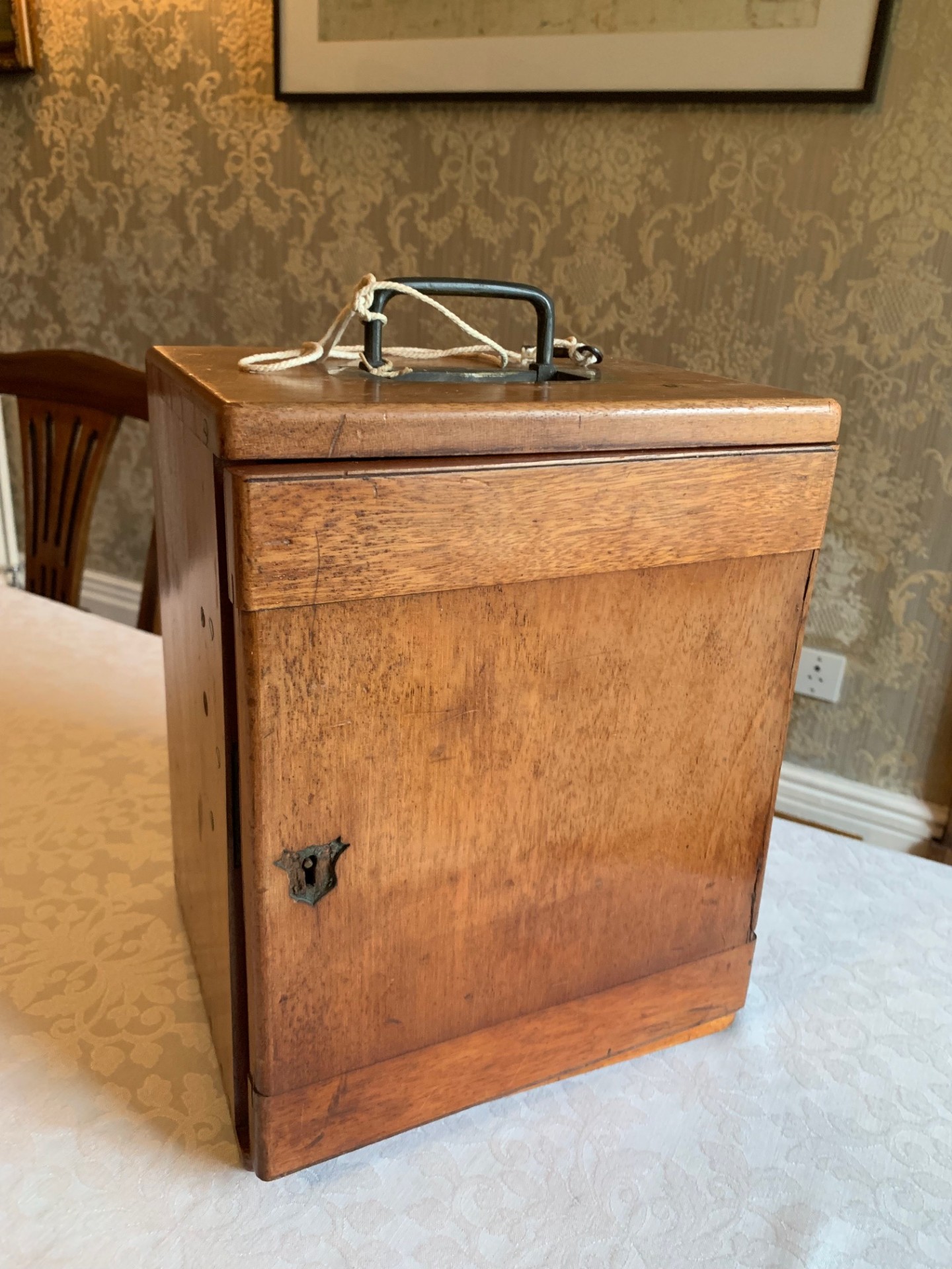 The instrument has been very gently dusted and also lightly lubricated with non-hardening grease where appropriate, so that the controls operate smoothly. This example of a Swift binocular displays exceptionally well having some lovely brass-work detailing, with rich gold tones which catch the light beautifully. It will no doubt make a stunning and quite usable antique display centre-piece, perhaps in a library or home office type of setting, especially when set up with an appropriate antique slide. There’s also the original case with the instrument that’s in decent period condition with recessed brass carry-handle, working lock & key and internal fittings. The case exterior sheen is a little sun-faded in parts and the door is also stiff in operation, but still mainly original.