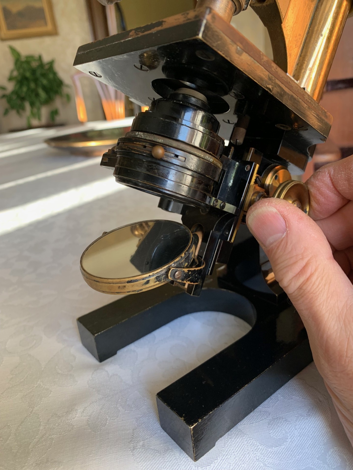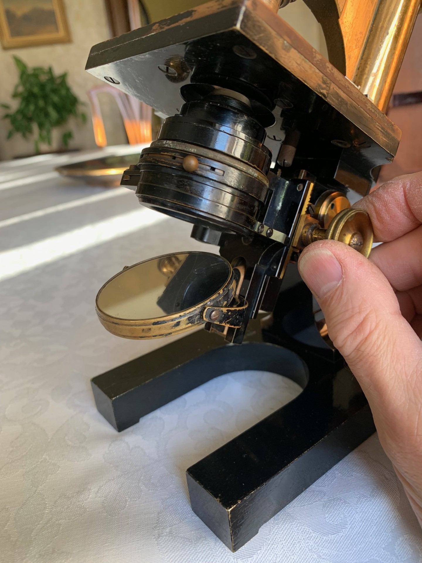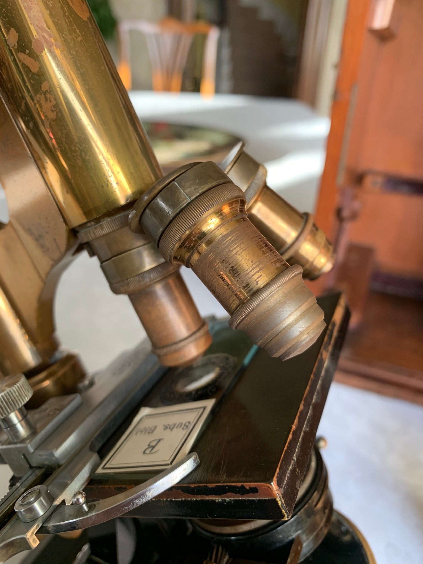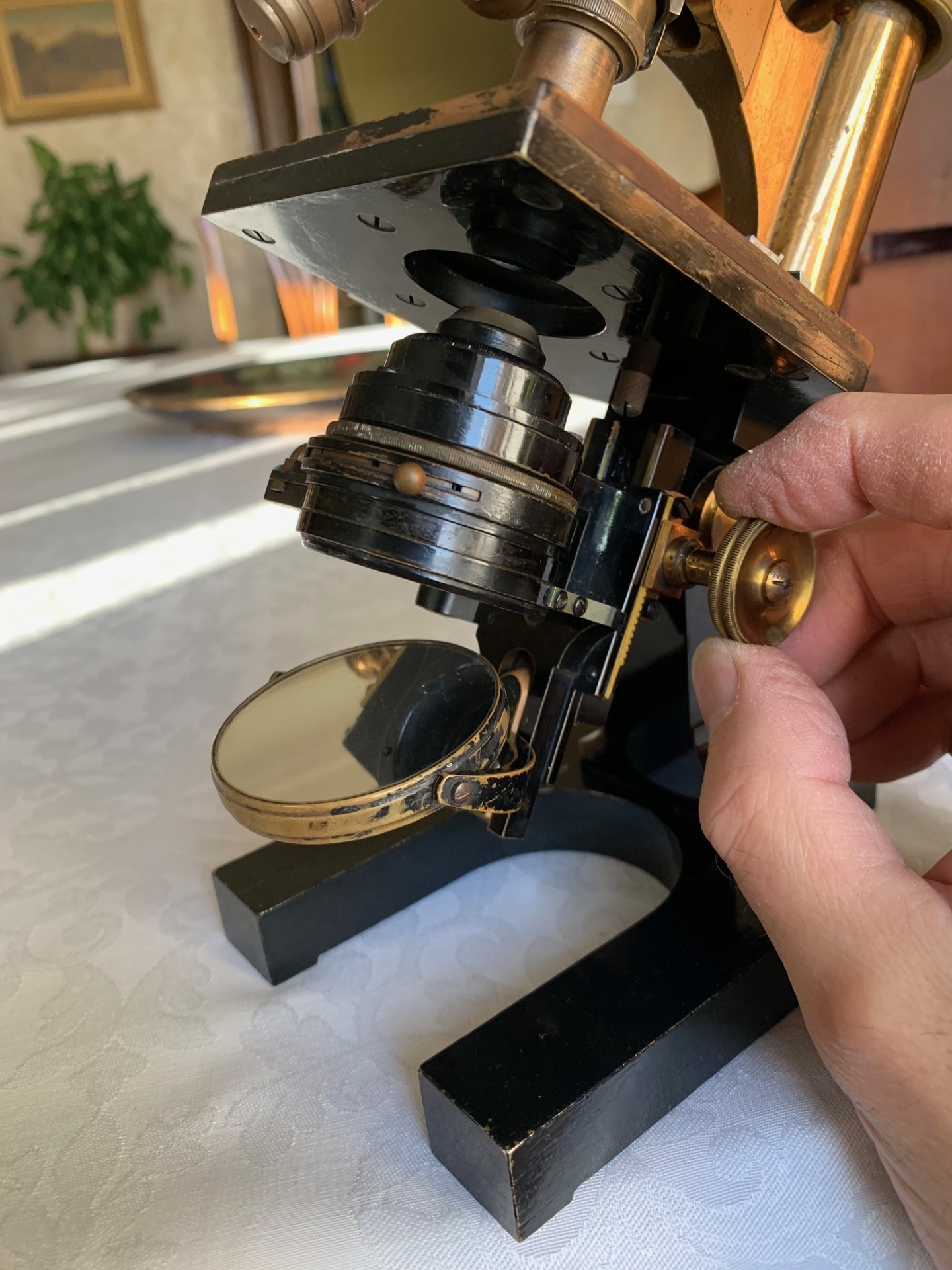 Generally good working and acceptable cosmetic condition example of a "matching numbers" continental pattern brass microscope by Ernst Leitz of Wetzlar, Germany dating to 1901.