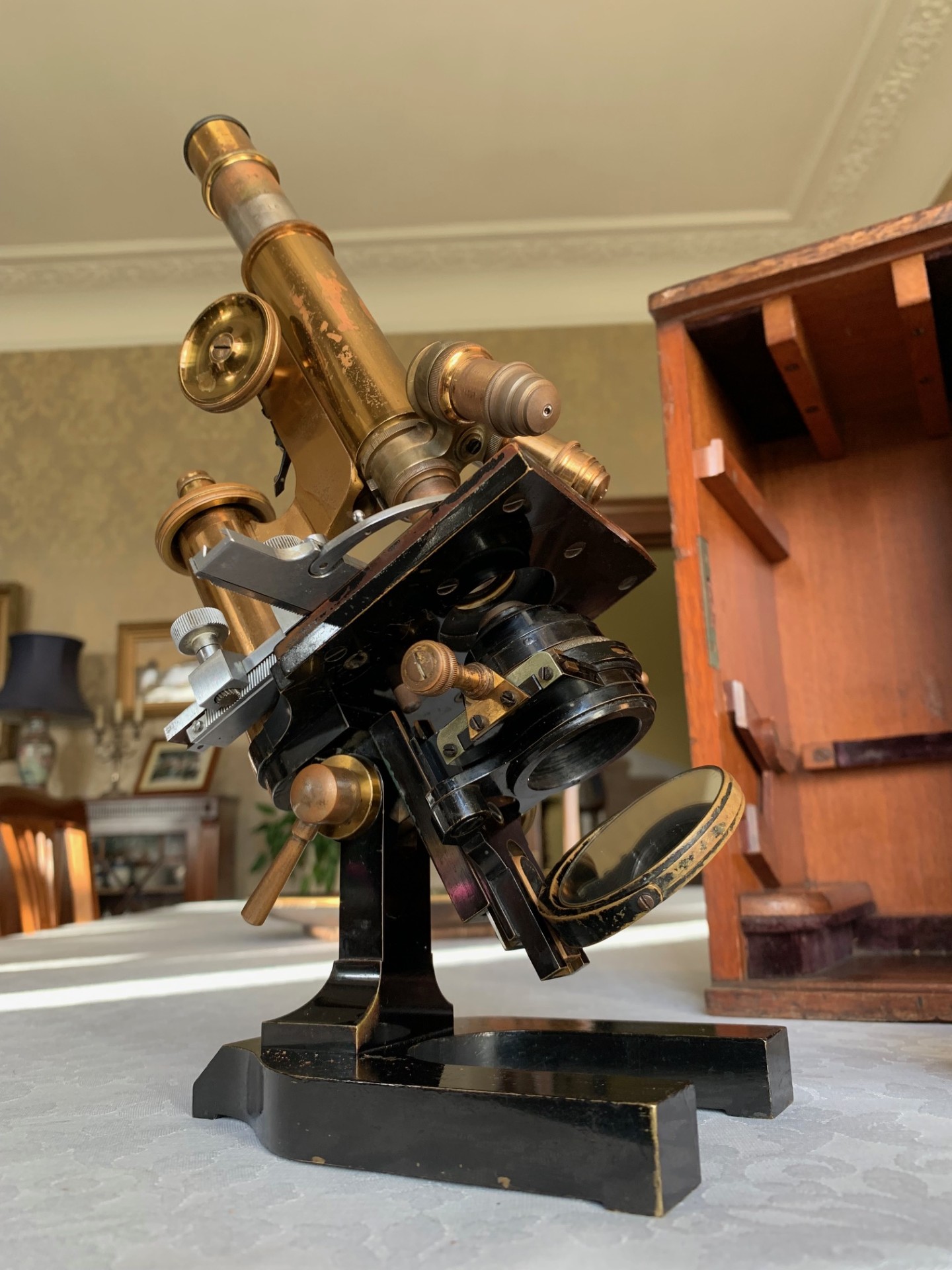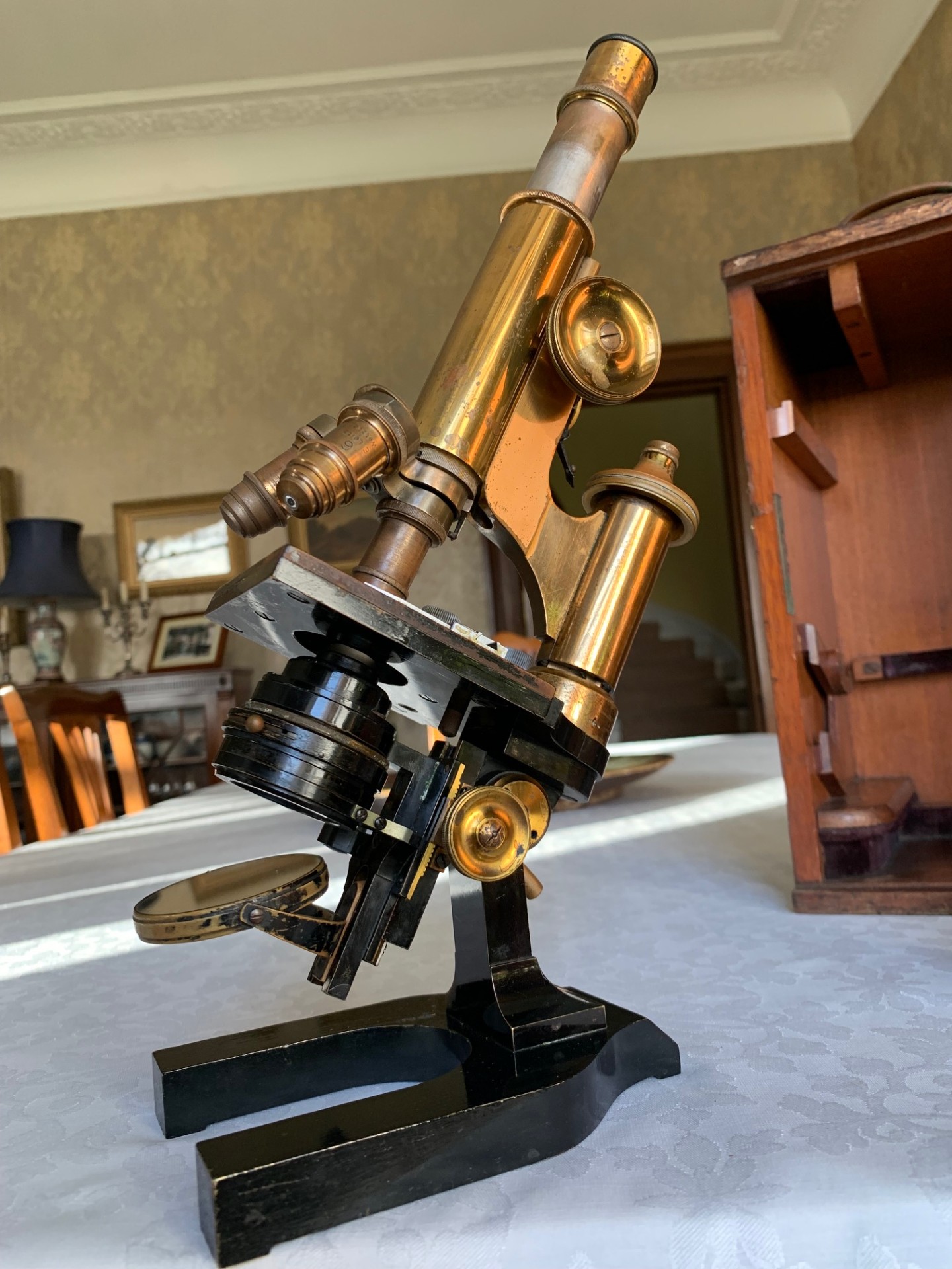 Despite its compact dimensions this is also quite a heavy microscope especially with the wooden storage case, so owing to its weight it will be partially dismantled, very well packed and dispatched by insured courier upon receipt of cleared funds.