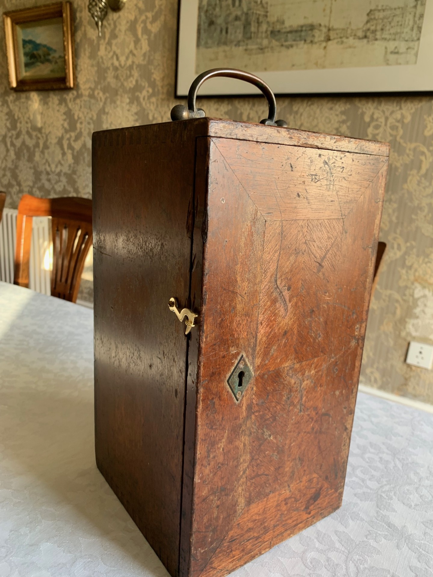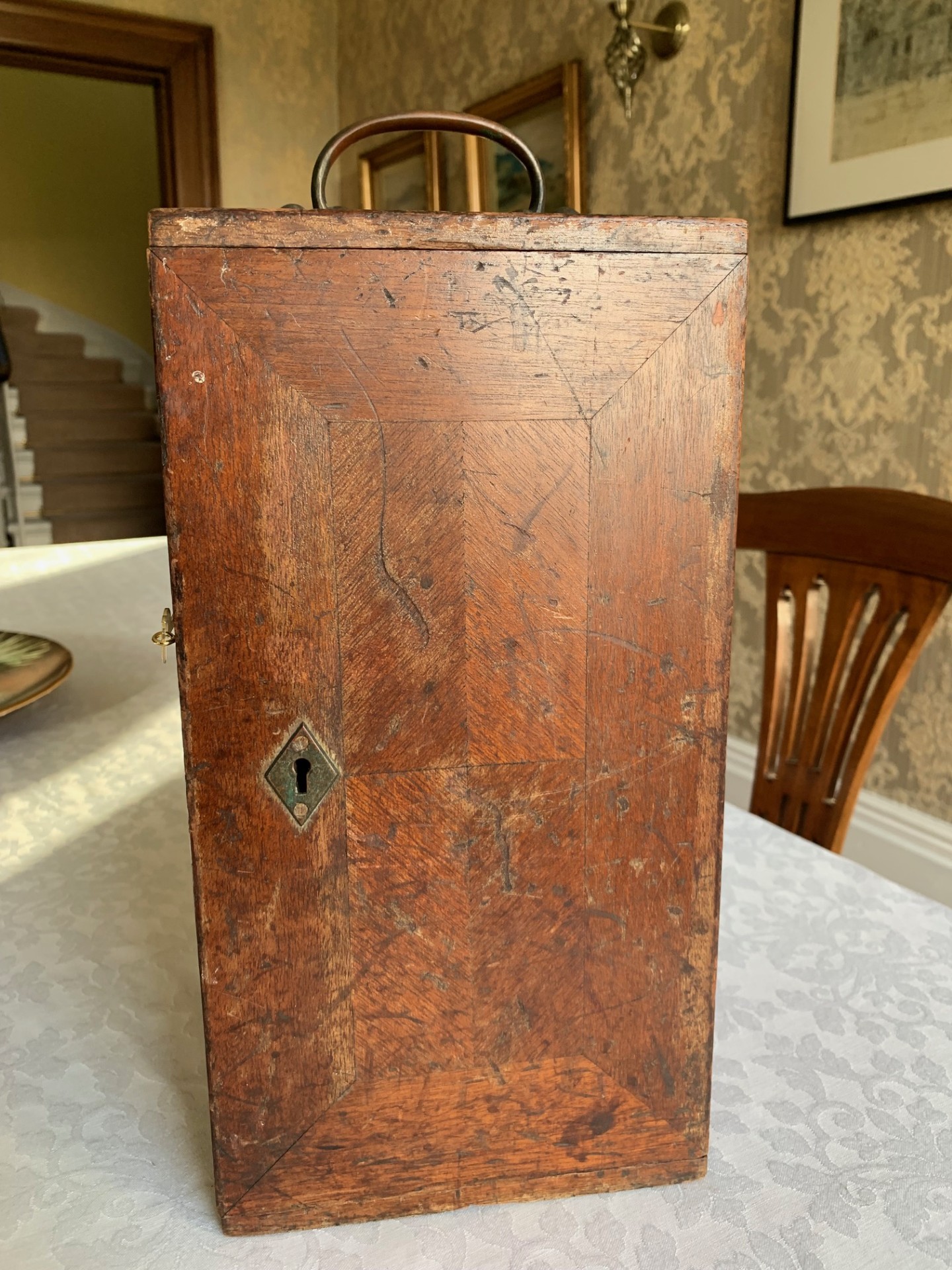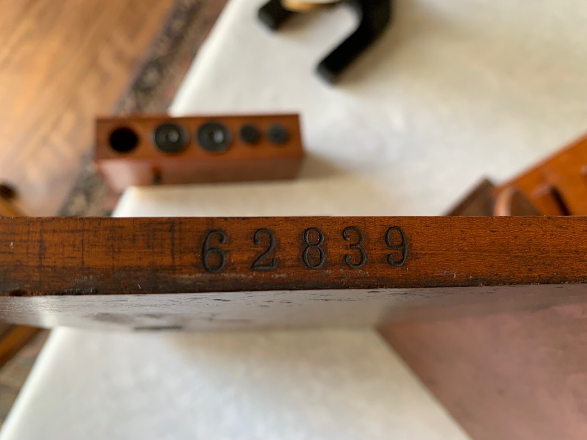 8) There is a matching numbers 62839 hardwood case with internal racking, carry-handle along with a cupboard latch to keep the door closed – lock is present but key missing. The case is in pretty solid condition for its age, with some loss of finish to the exterior surfaces.