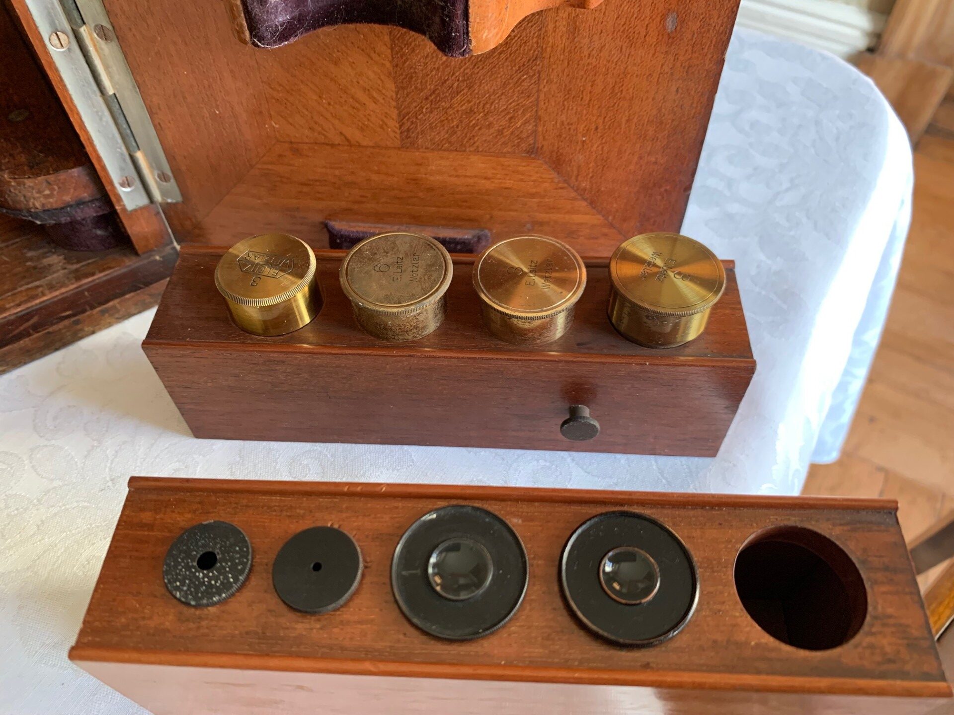 (all objectives Leitz brass storage canisters)