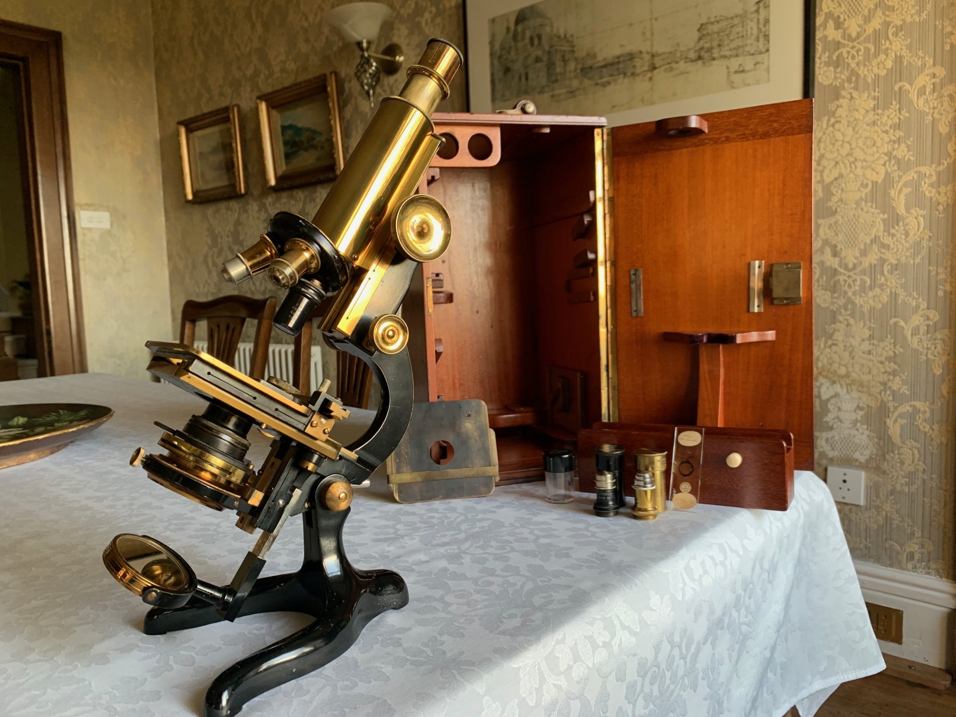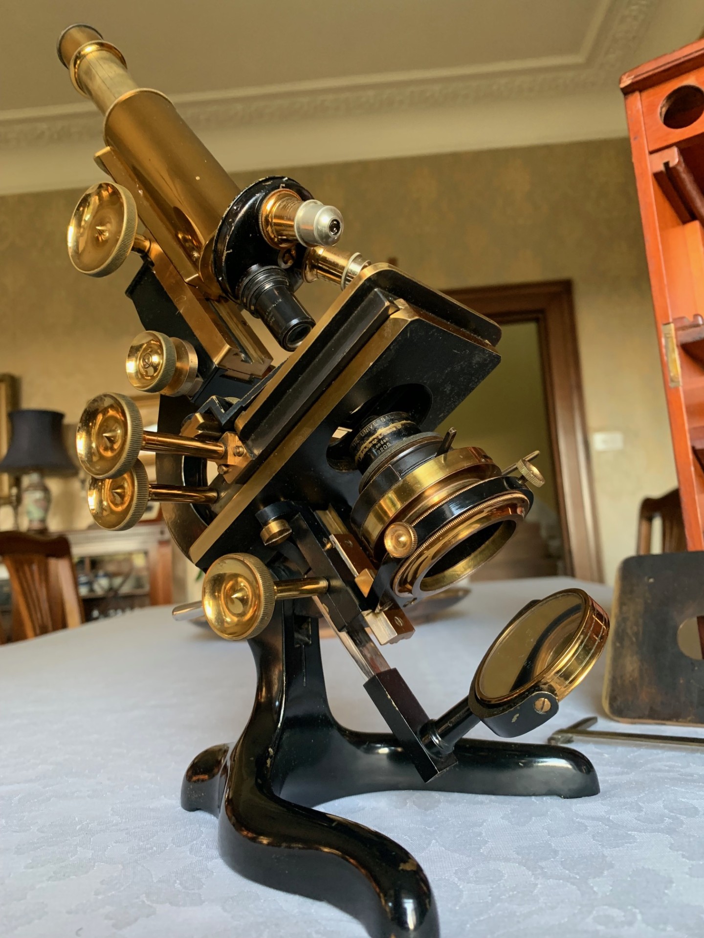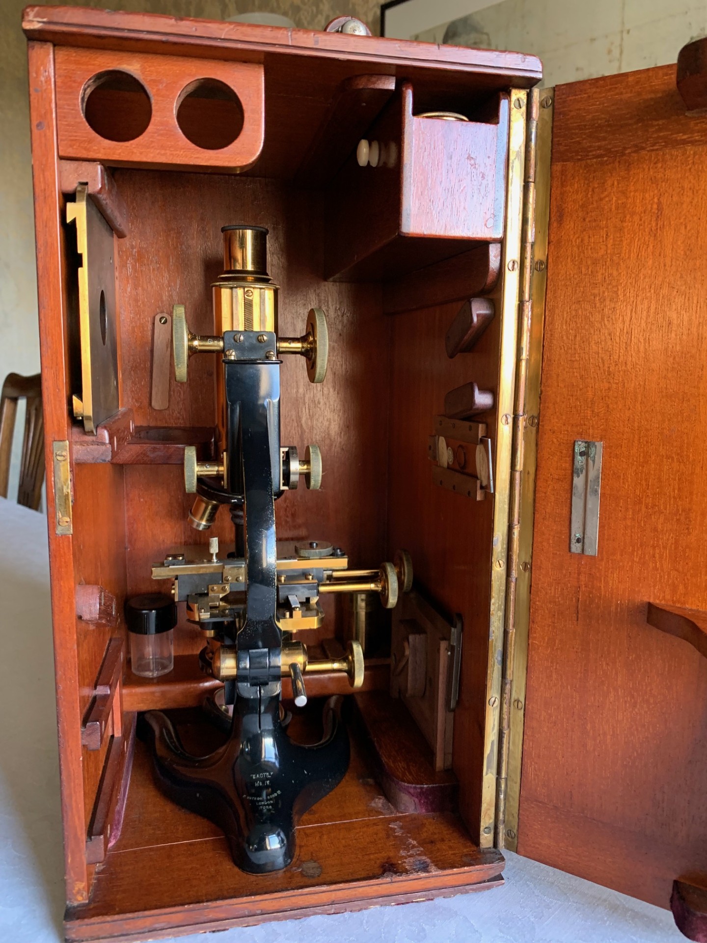 Owing to the weight and delicacy of the microscope and case, it will be partially dismantled, very well wrapped for shipping and dispatched by insured courier upon receipt of cleared funds.