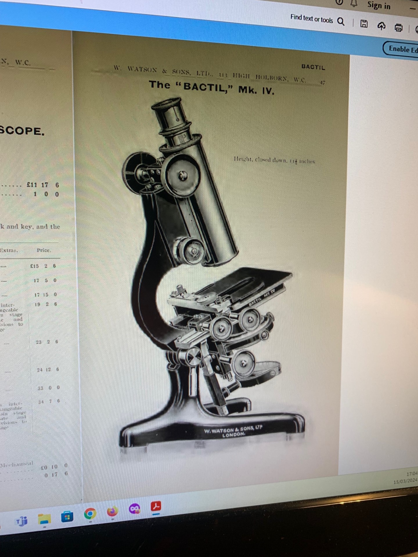 The Bactil MkIV is essentially an excellent piece of British optical engineering built from quality materials, with solid construction, great design and skilled workmanship and in this period many hours of hand-finishing and it’s hard to believe that it’s actually 112 years old, so definitely an antique. This is a sturdy good quality microscope in original condition, fully working, with no significant signs of wear that I can find, so it’s got a great look and patina and a top brass example from 1914. I’ve included a couple of pages from Watson’s 1912 product catalogue at the end of the listing photos, showing this model and confirming its research-grade credentials as an “elaborated” version of Watson’s Standard MkI model microscope.