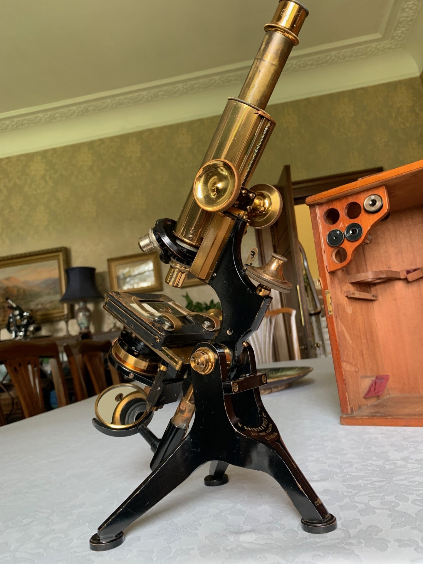 Antique W. Watson & Sons Ltd – Edinburgh-H Brass Microscope – circa 1914, Cased
