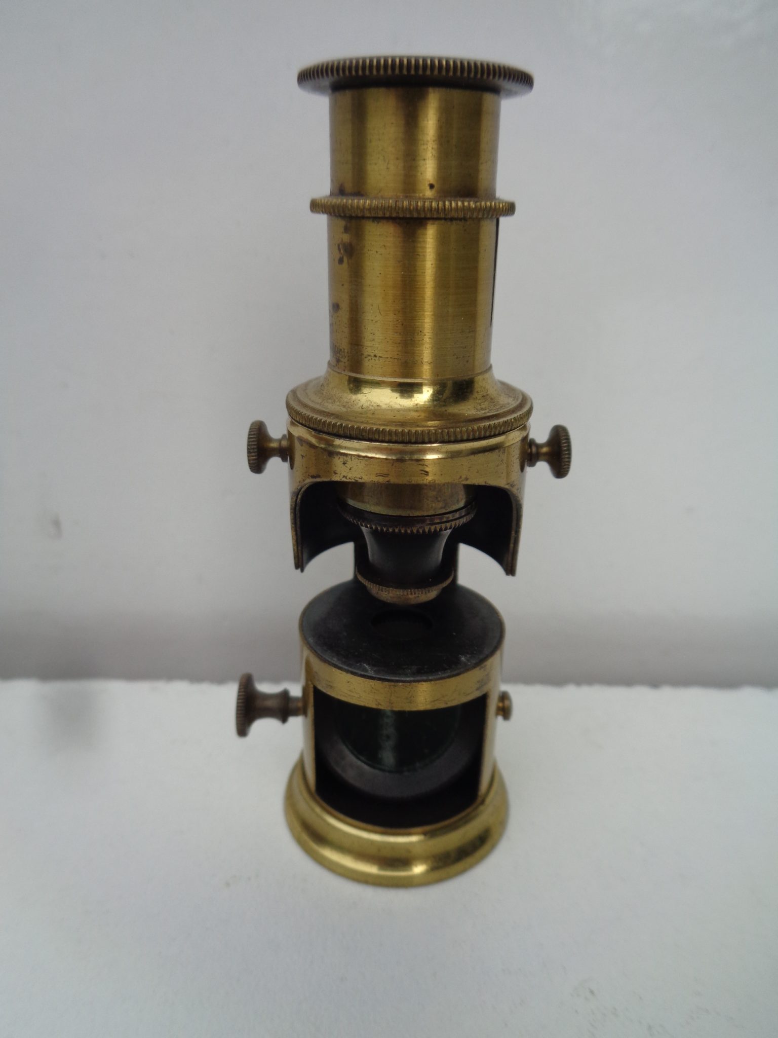 The microscope is in excellent working condition and comes with accessories: tweezers, a needle, and 2 small slides. The microscope can be securely attached to the lid.