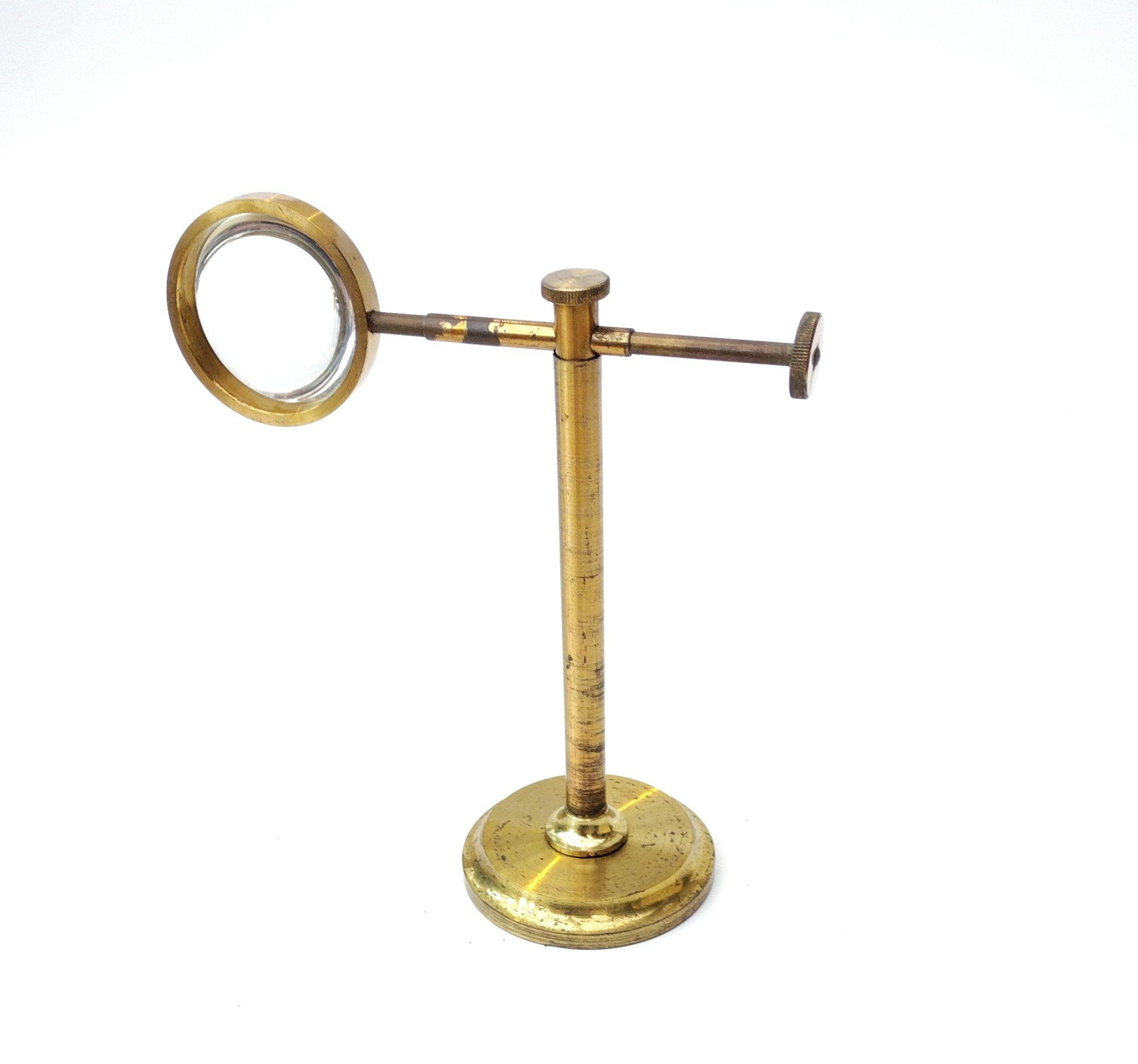 SOLD – The height is 13.5 cm and can extend to around 19 cm. The glass is 3.5 cm diameter (4.2 cm including the brass cell).