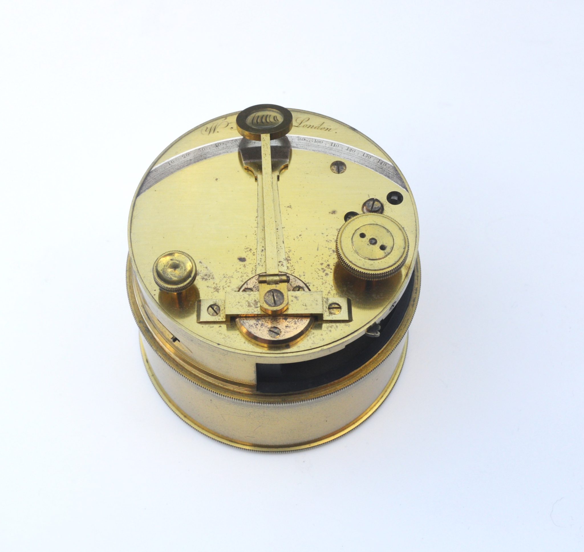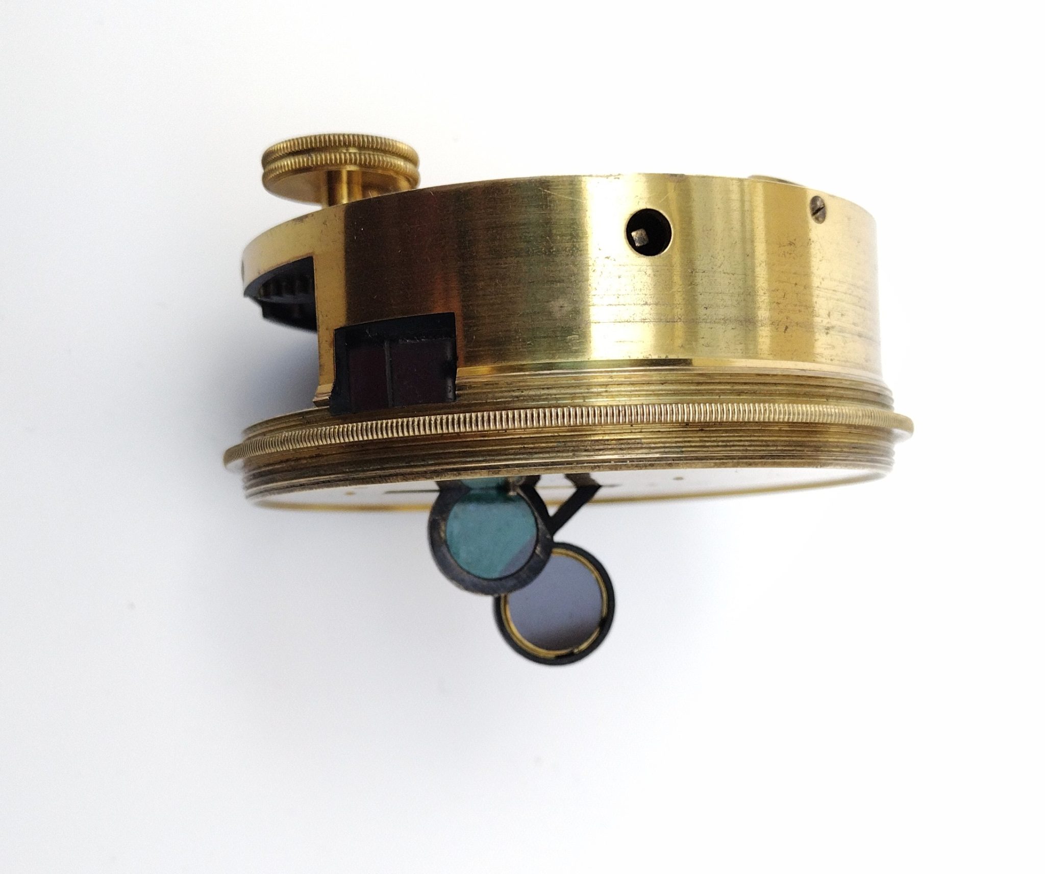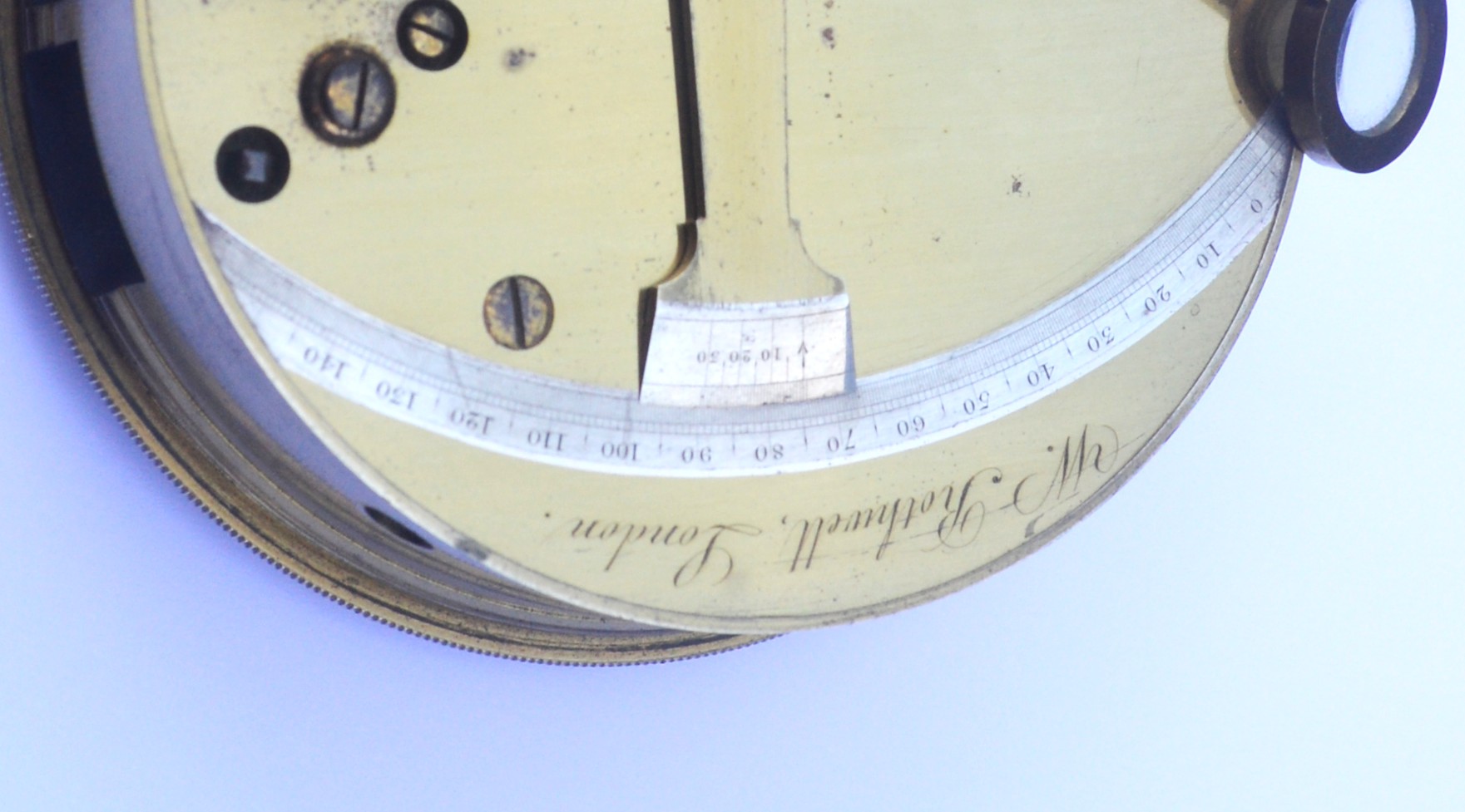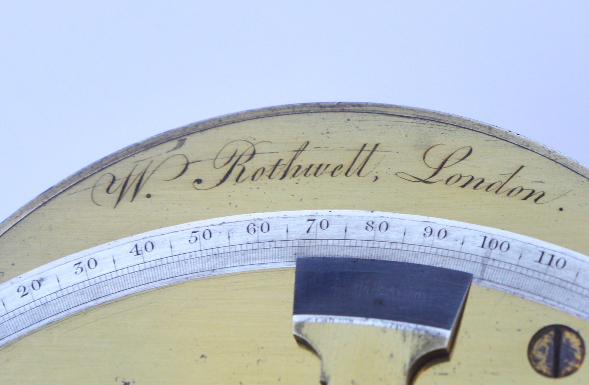 Three inch diameter drum sextant, signed above the silver arc, ‘W. Rothwell, London’, with peep hole sight, two drop down sun filters and mirror adjusting key.
