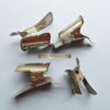 A very good example of Traube’s pleximeter with scale. The body is bone and the hinged wings (aka: ears) are German silver with floral decoration. Length as shown in first image: 3.25″ (8 cm). A couple of rock-solid hairlines but overall in nice condition. The first image most closely captures the color of the bone. The London Science Museum has a similar example in its collection–see link below: