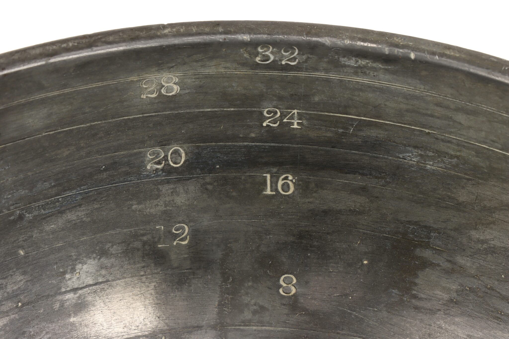 English, C1800 porringer type with graduated rings for fluid ounces 4 – 32, maker’s touchmark to base of a unicorn and crown with a motto (not fully legible). Diameter 16.5cm