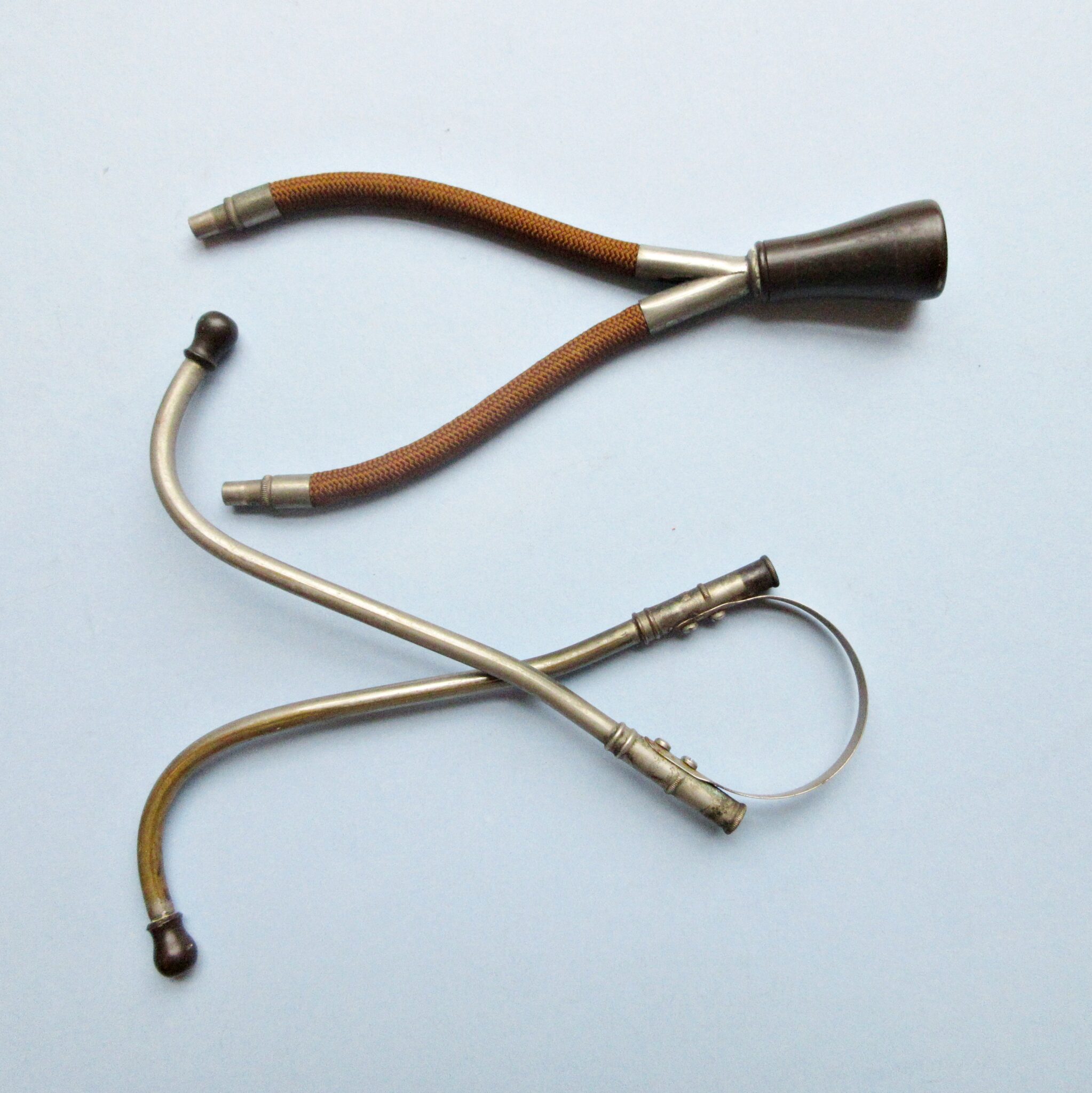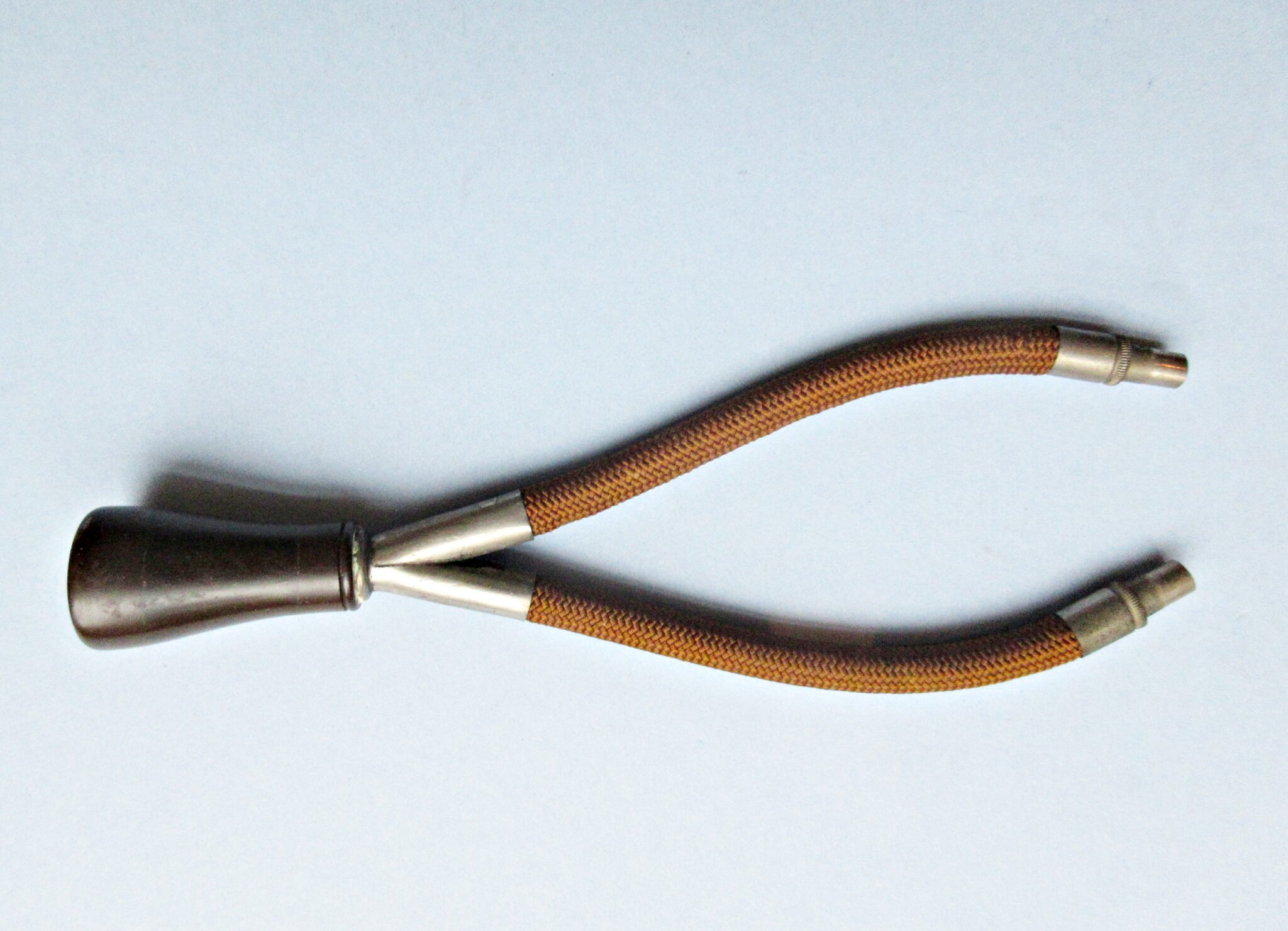 Camman’s second-model stethoscope with fixed Ebonite chest piece. Some darkening of the metal on the ear piece but overall in very good condition.