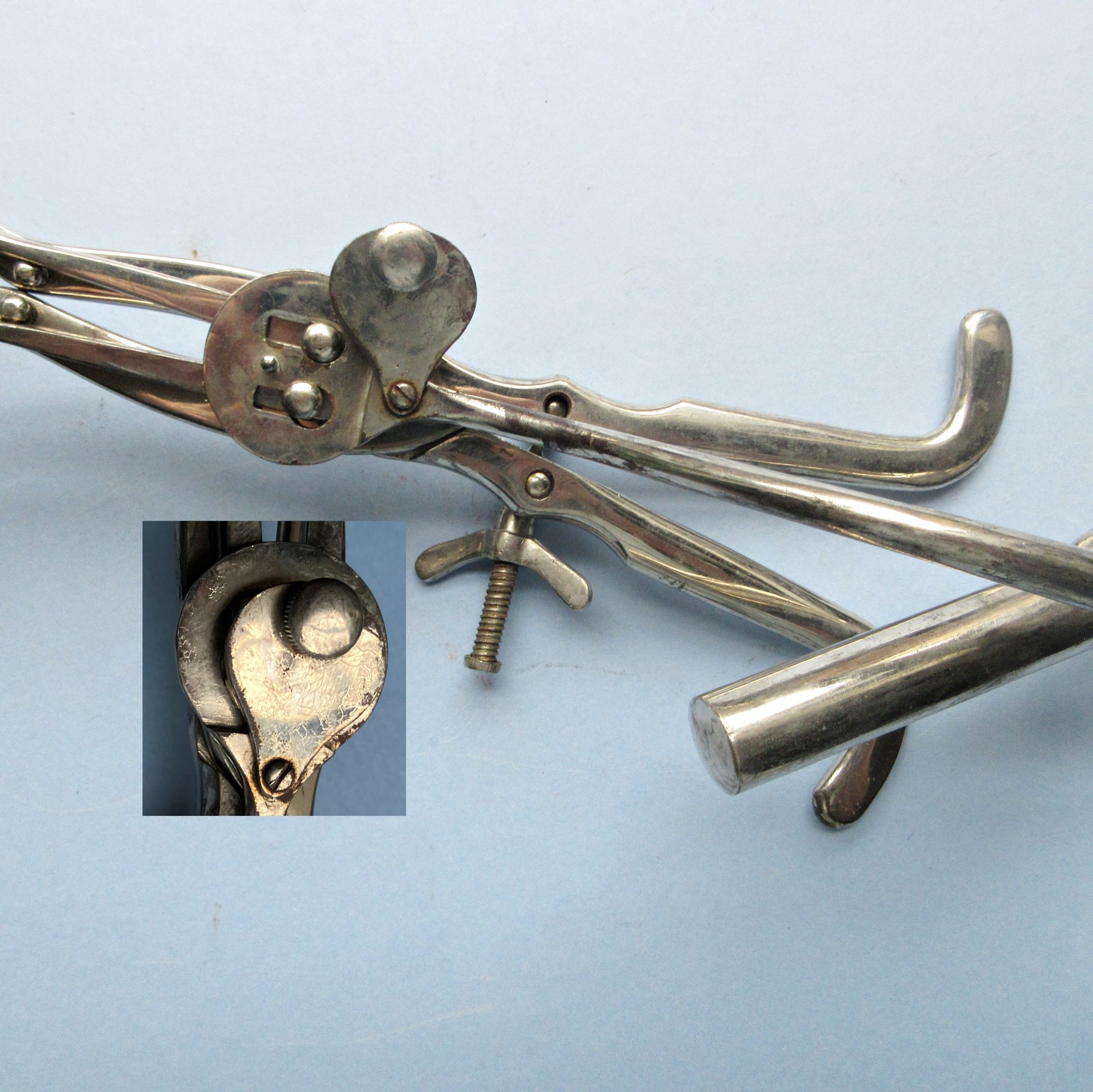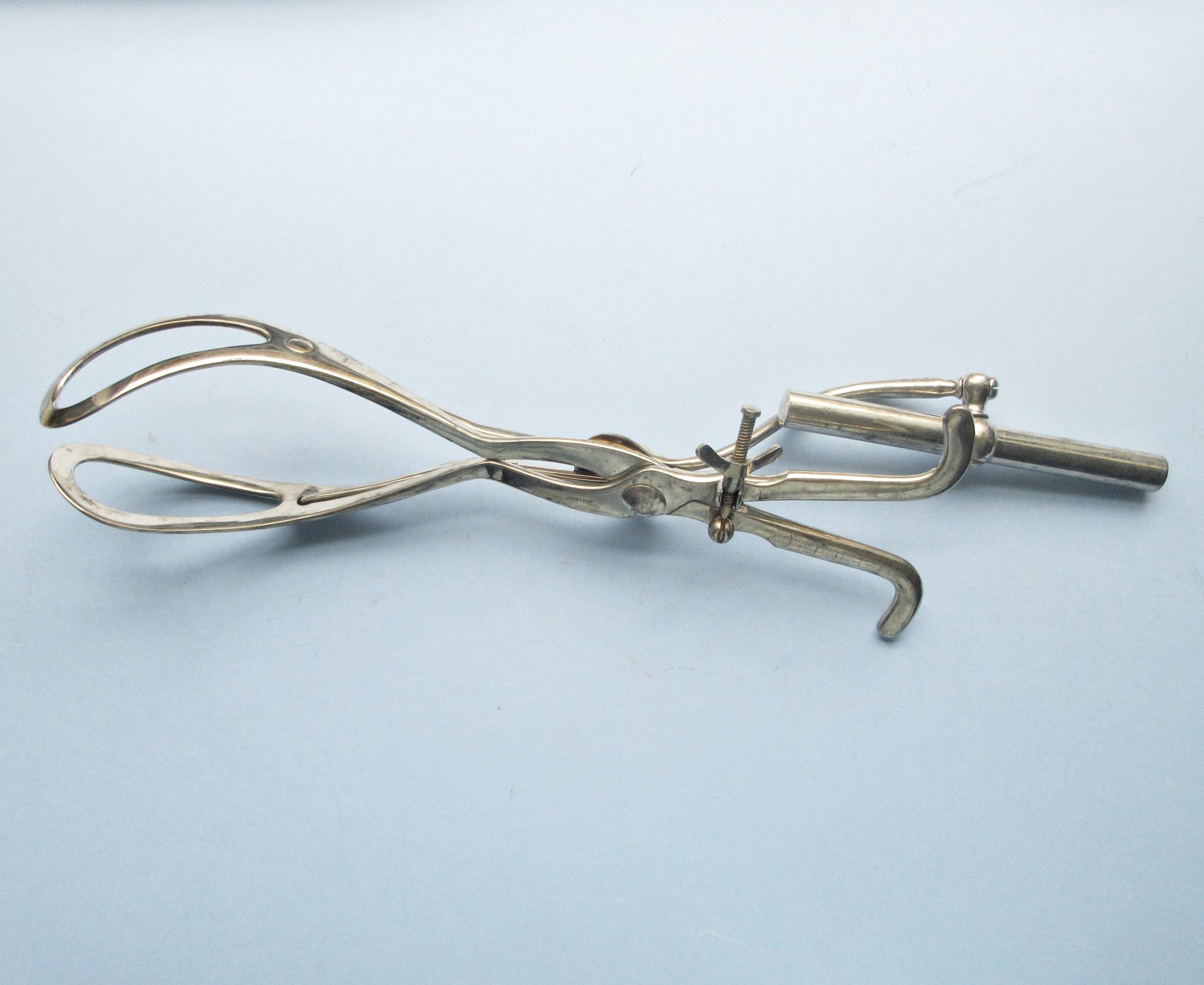 C1895 Jewitt’s Axis Traction Obstetrical Forceps. Unsigned. Charles Jewitt introduced his forceps in an article published in 1895 in the Brooklyn Medical Journal: Brooklyn Med J 1895 V-9: 23-30. At the time he was a Professor of Obstetrics at Long Island Hospital in Brooklyn.His forceps were an attempt to improve the then gold standard in traction forceps: Tarnier’s. ” In 1877, French obstetrician Etienne Tanier (1828-1897) introduced the most important innovation in obstetrical forceps during the 1800s. It consisted of an attachment to the blades. This allowed traction to be applied in the axis of the birth canal.[ Wellcome Collection] “