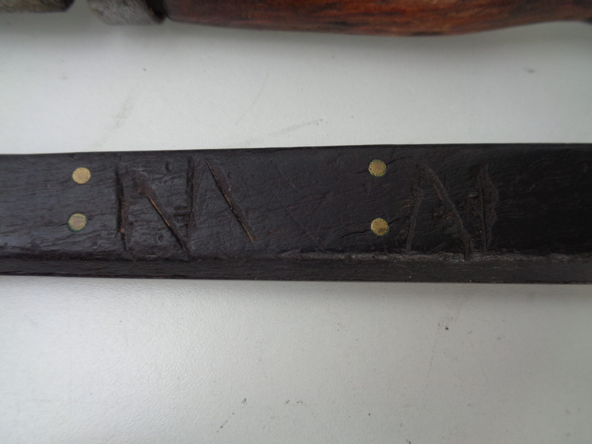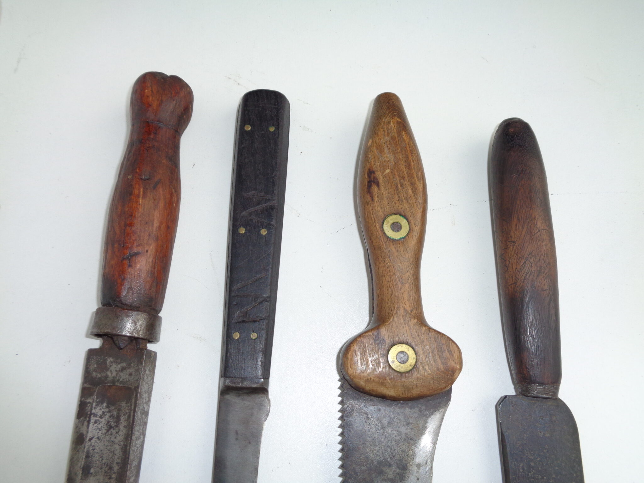 Four large primitive Civil War period 1861/1865 amputation knives, one has a double-function saw on one side and a knife on the other, one with maker’s mark and two with the owner’s initials, will be securely packaged and sent by registered mail.