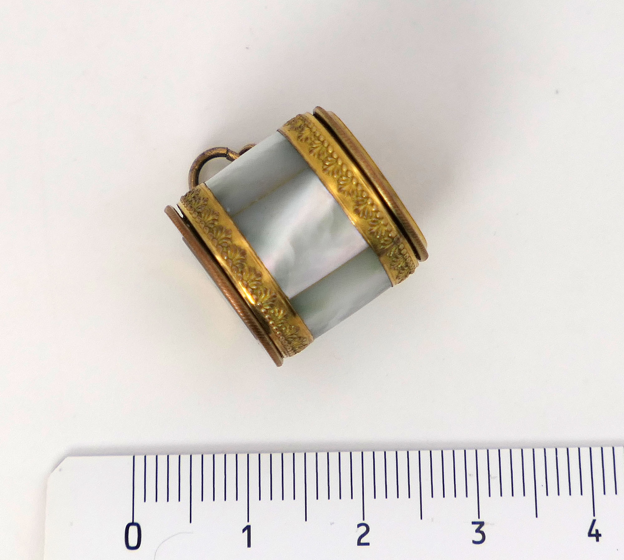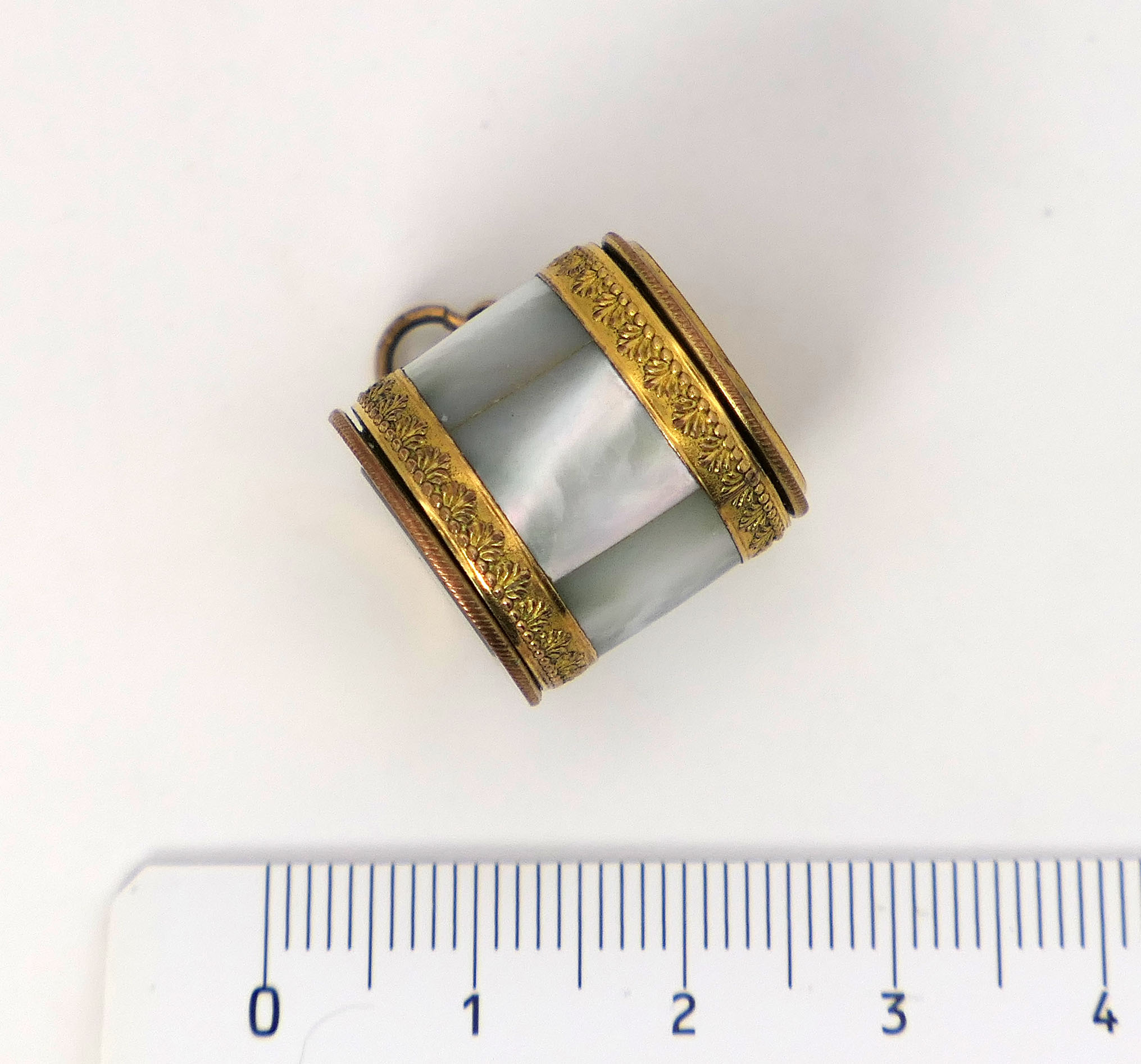 A beautifully decorated and highly prestigious ormolu-decorated French Coddington pendant microscope. I analyzed it using an X-ray fluorescence (XRF) spectrometer and found that the ormolu-decorated frames are made of gold-plated brass alloy. The body of the microscope is crafted from mother-of-pearl and is in excellent condition. I will provide the precise elemental composition to the buyer. The magnification is impressive, and the resolving power is good for that period.