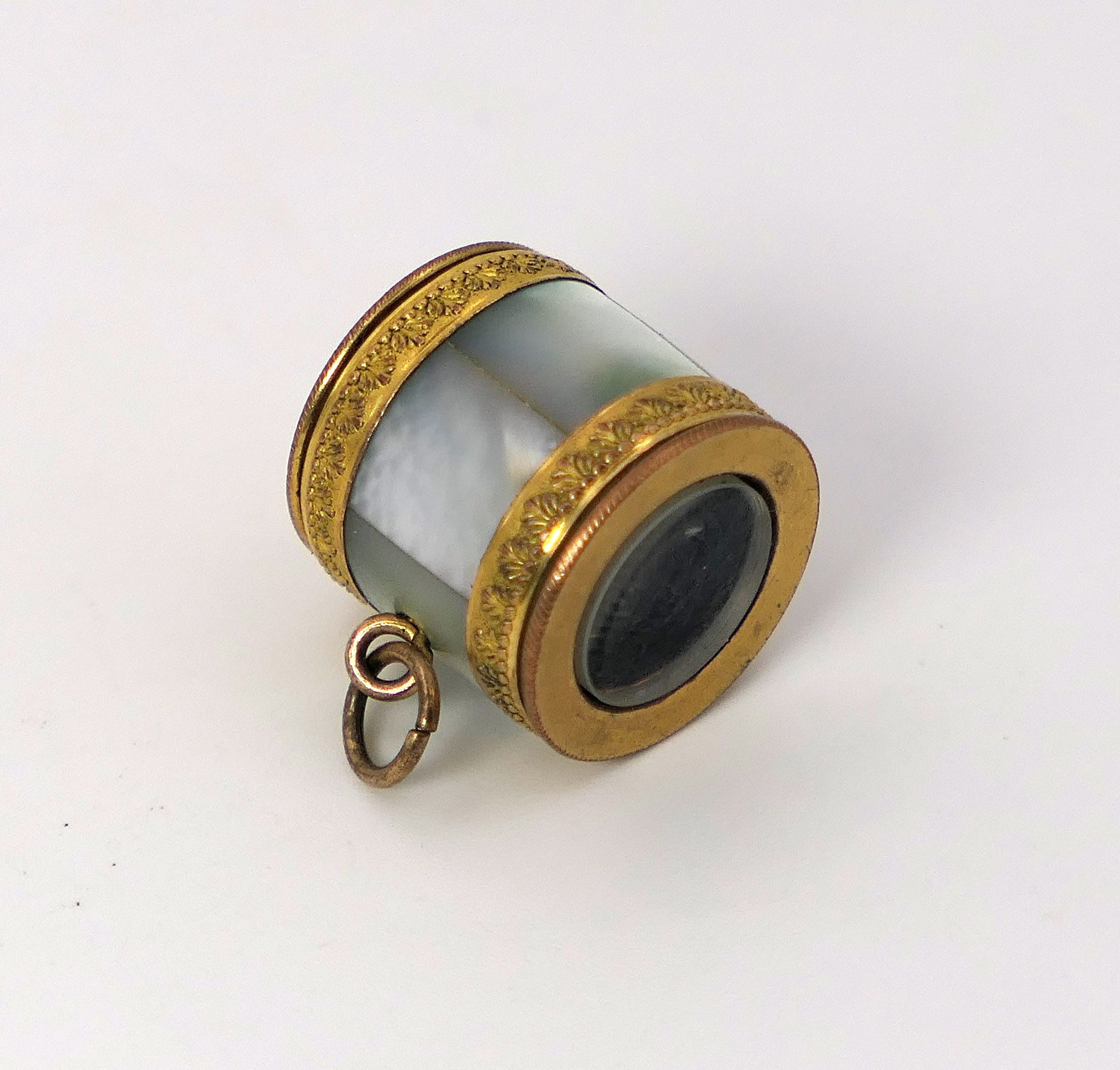 Coddington Microscope Pendant Set In Gold-Coated And Mother Of Pearl Ormulu Housing, Late 19th Century