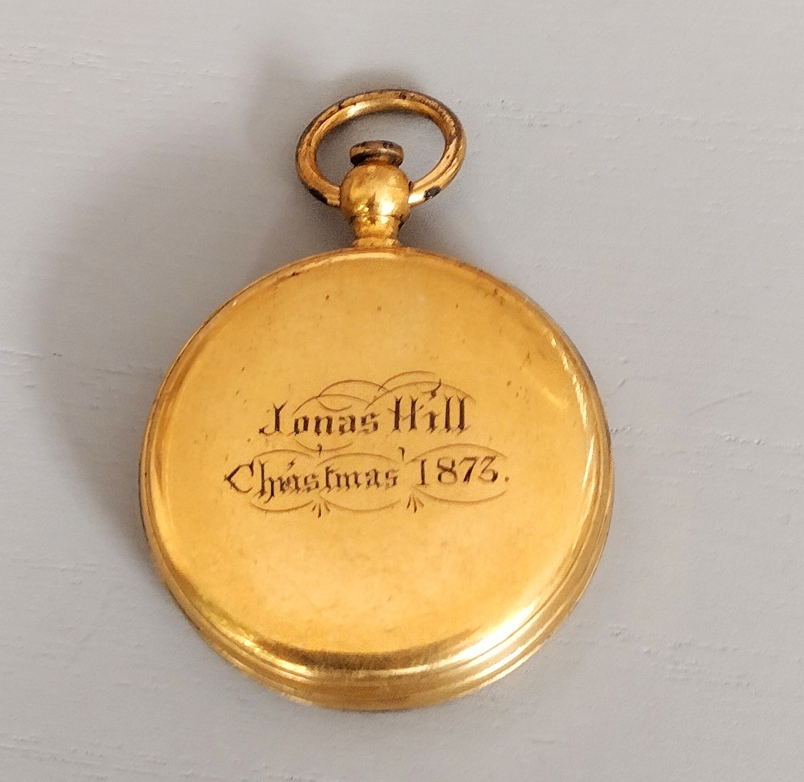 The rear of the compass is engraved, ‘Jonas Hill. Christmas 1873’.