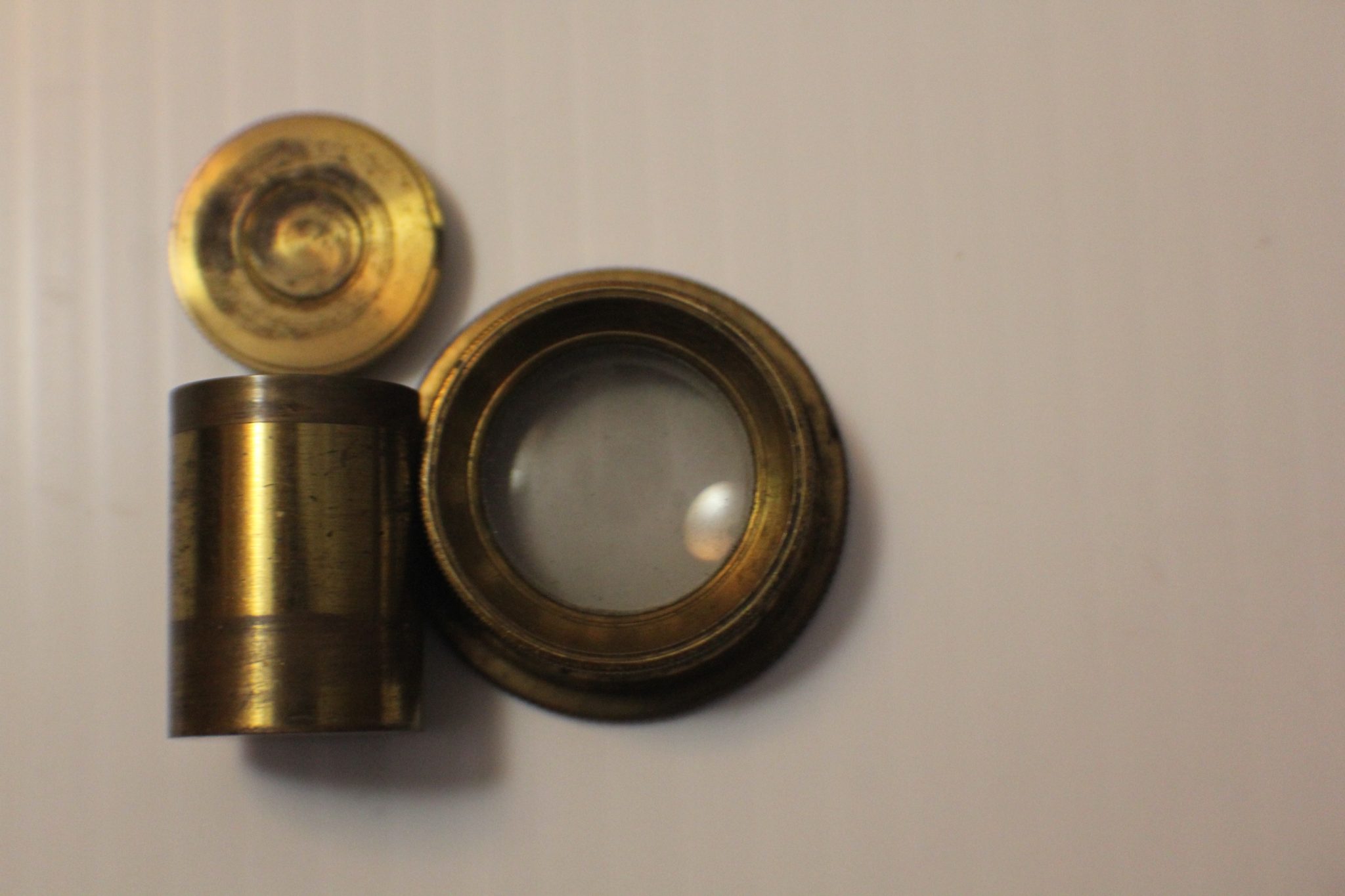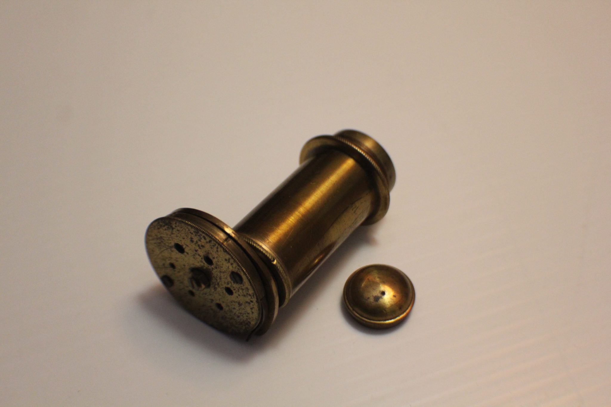 8) Brass talc box 26 mm. long