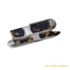 Dr. Krishaber’s Laryngoscope set for visualizing the larynx with an indirect (candle) light. The case is made of black leather with a purple velvet interior. It is a complete set with lenses and two square mirrors.