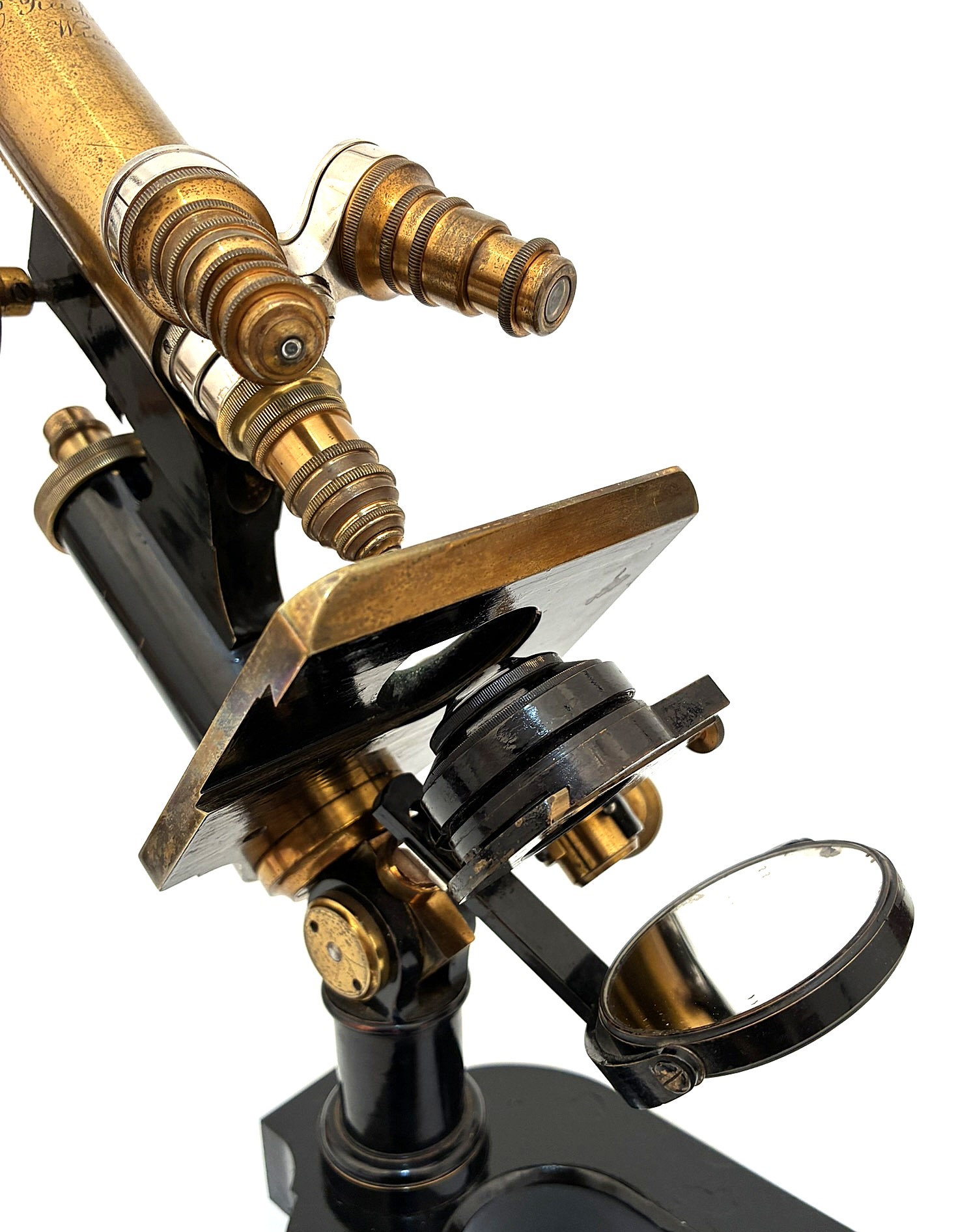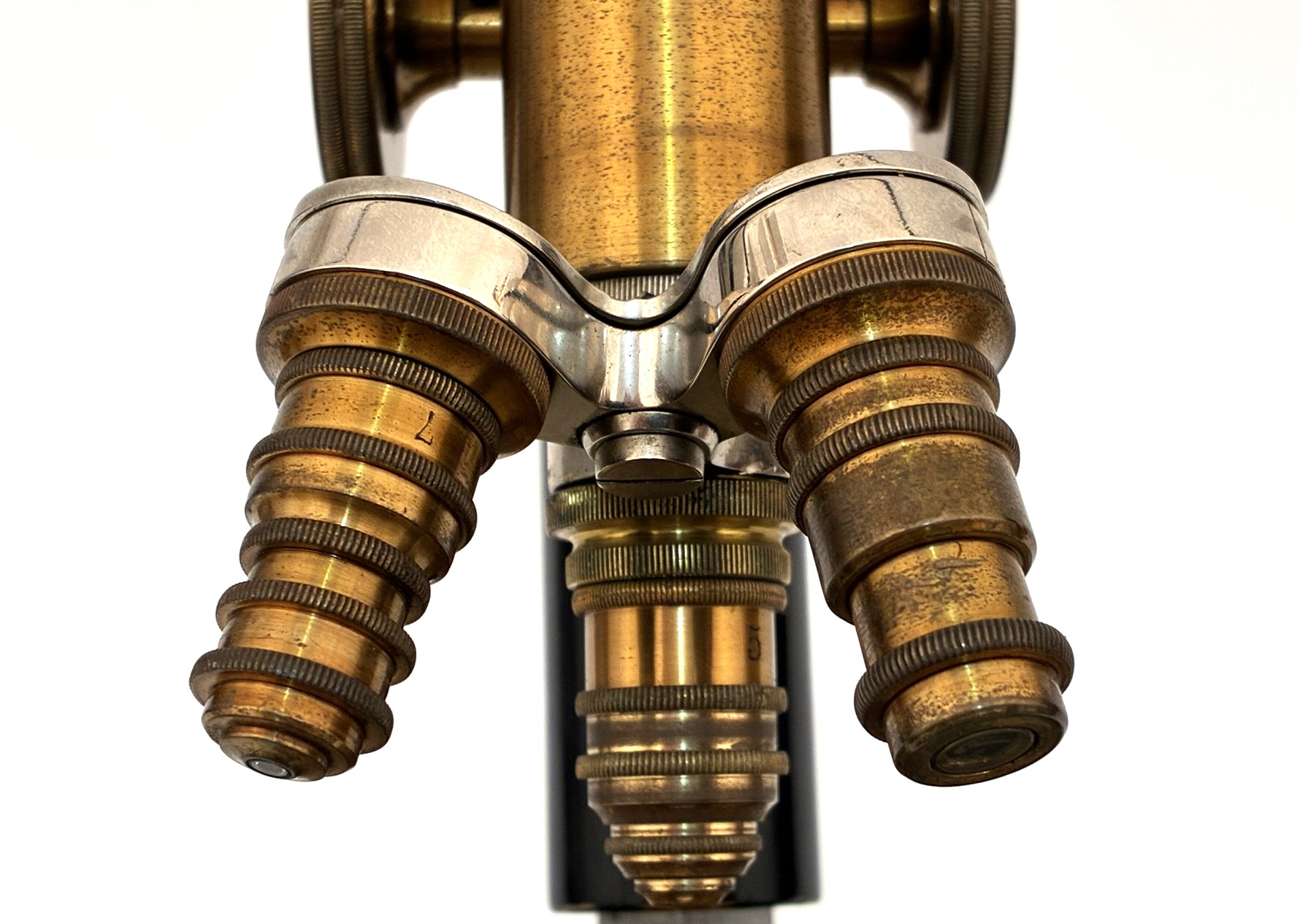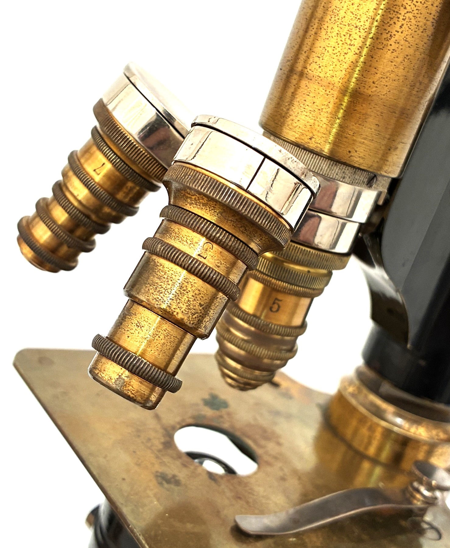 This antique Reichert microscope, with over 150 years of history, is one of the first he manufactured and shares many features with Leitz microscopes; not surprisingly, he was Leitz’s son-in-law. After marrying Leitz’s daughter, he moved to Vienna where he relocated his business.