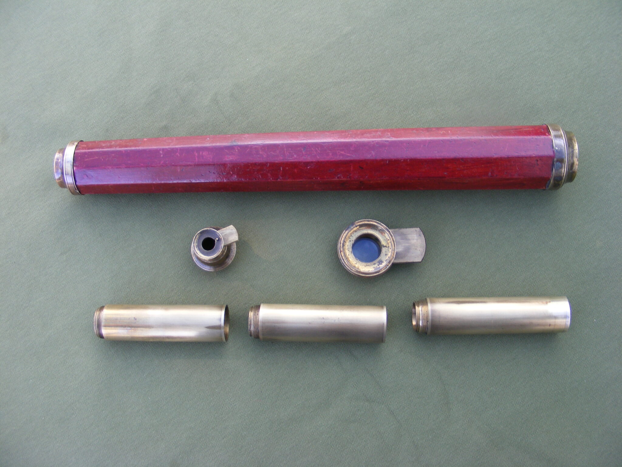 GOOD 18TH CENTURY DECAGONAL SINGLE DRAW TELESCOPE WITH SCHYRLE 3 LENS EYE-PIECE FULLY RETRACTABLE,