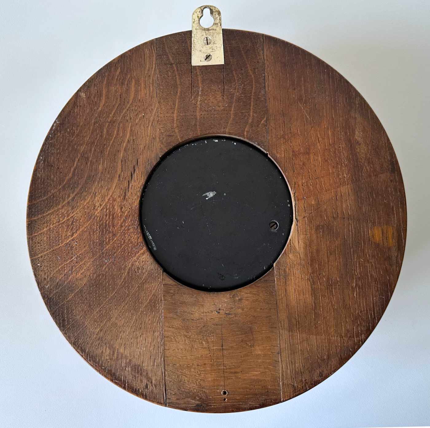 This fine example of a Weather Foreteller is without doubt the rarest of them all. It is set within a robust, 11” diameter and 2.5” deep oak case with wall hanging loop to the top.