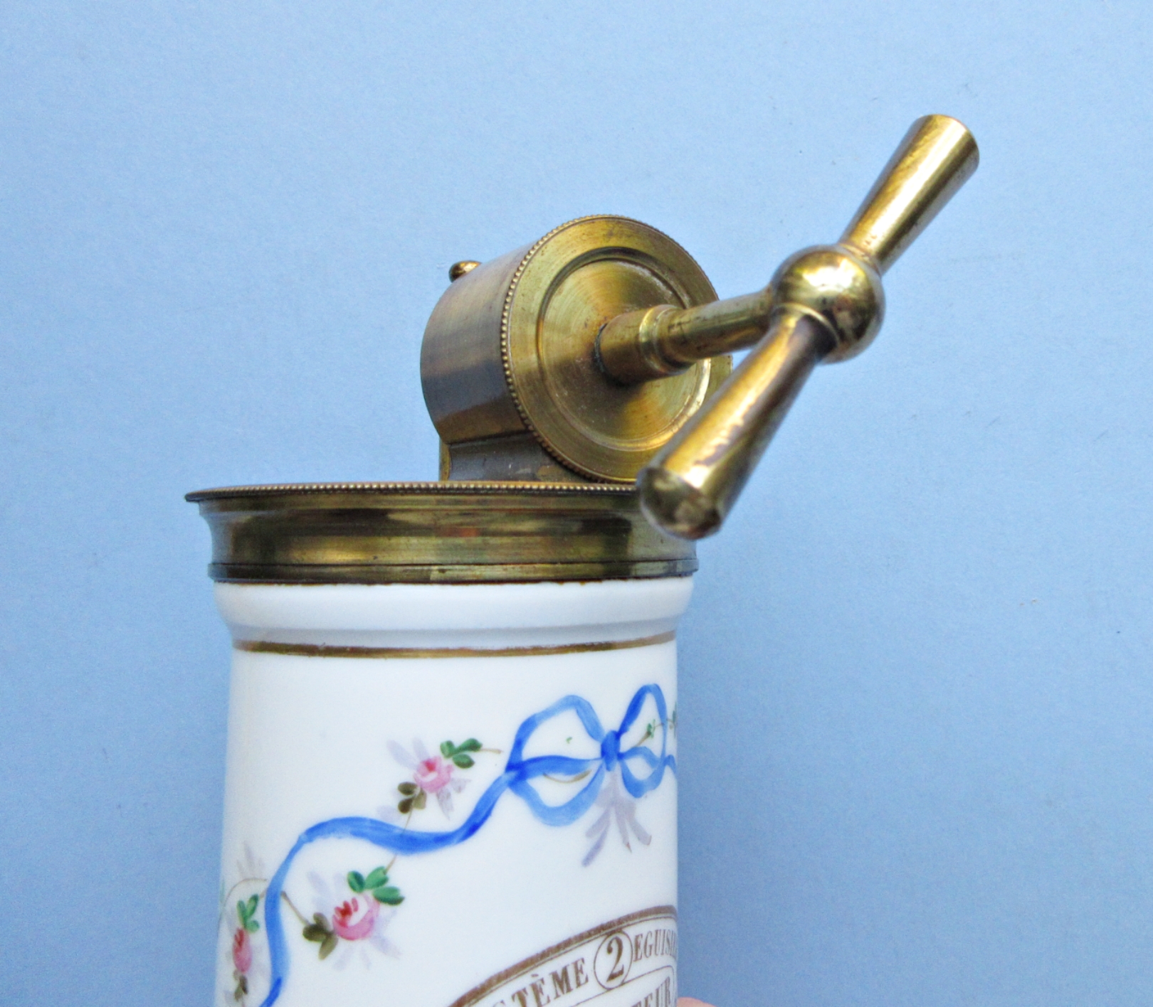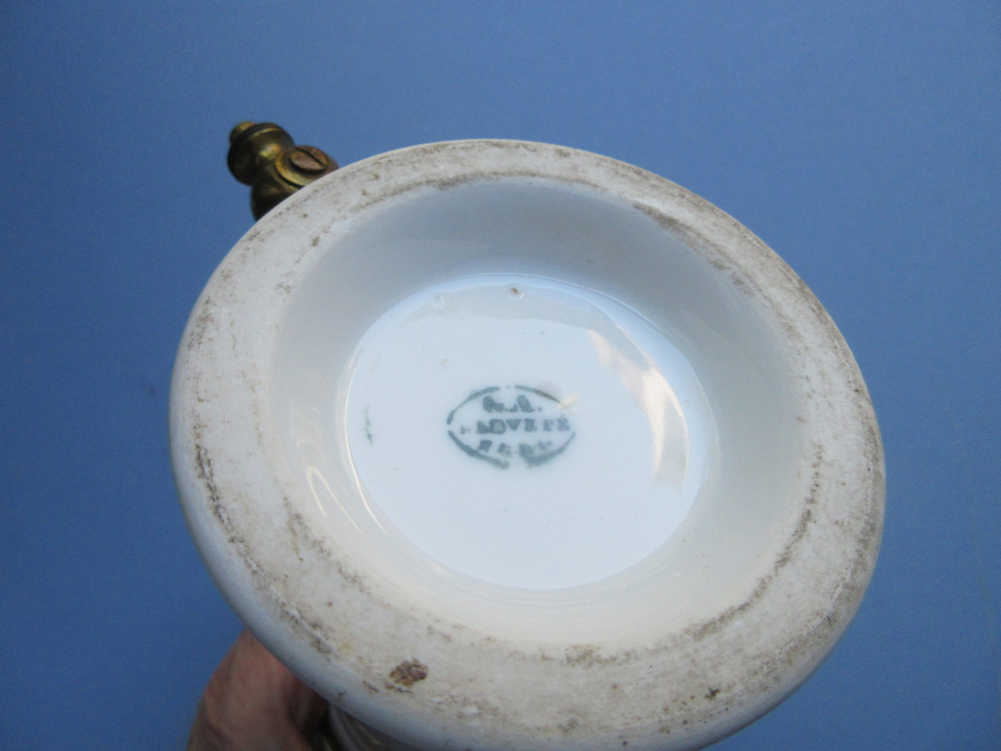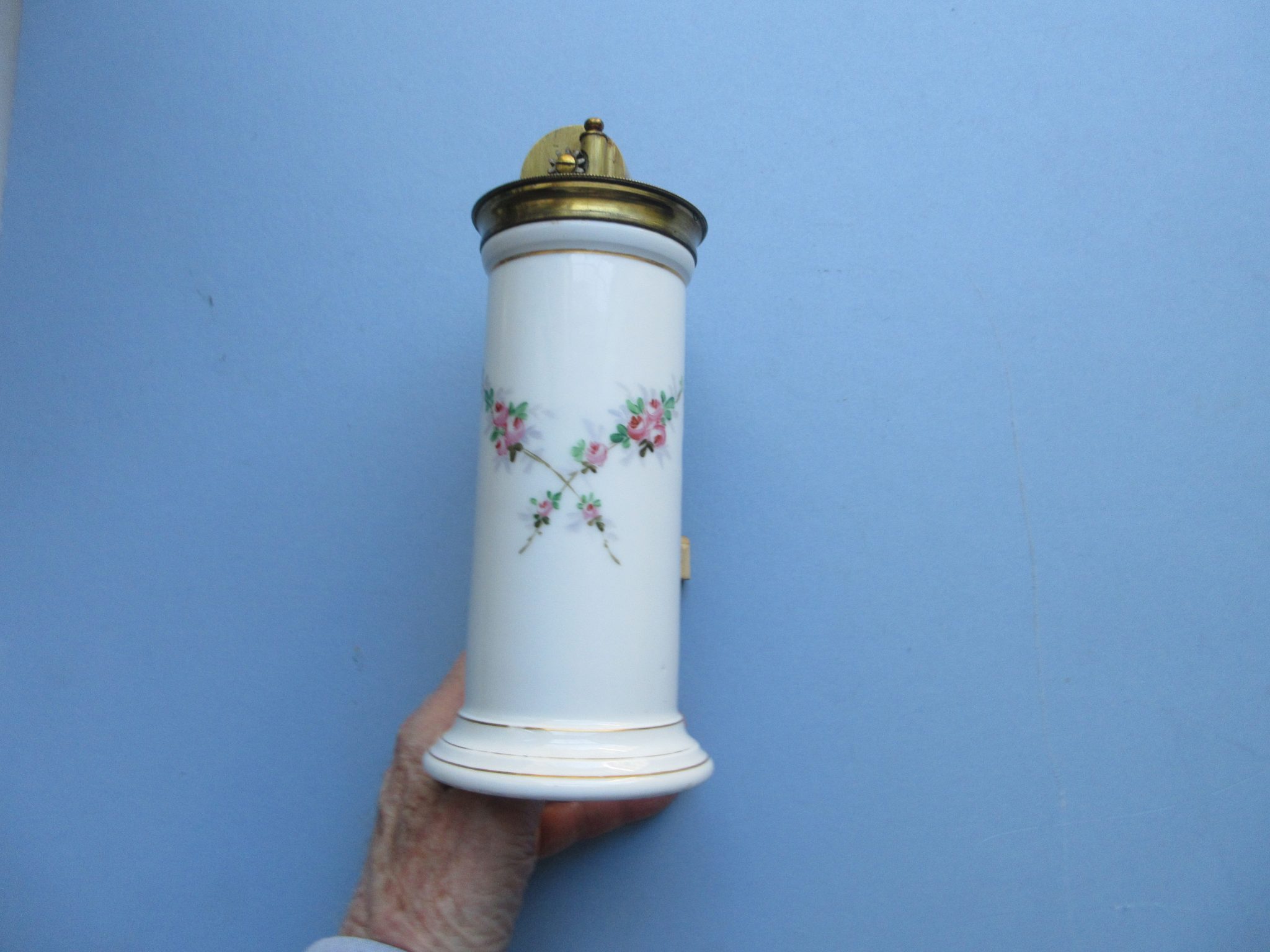 A very fine example of Dr. Egusier’s Douche. The majority of Egusier douches produced during the second half of the 19th-century were all metal or un-decorated porcelain. This example retains its original painted, floral decoration and the gilding on the metal fixtures is in fine, bright condtion as is the porcelain. The mechaism works perfectly. Height: 9″ or 22.5cm. PLEASE NOTE THAT FREE SHIPPING ONLY APPLIES TO THE USA.