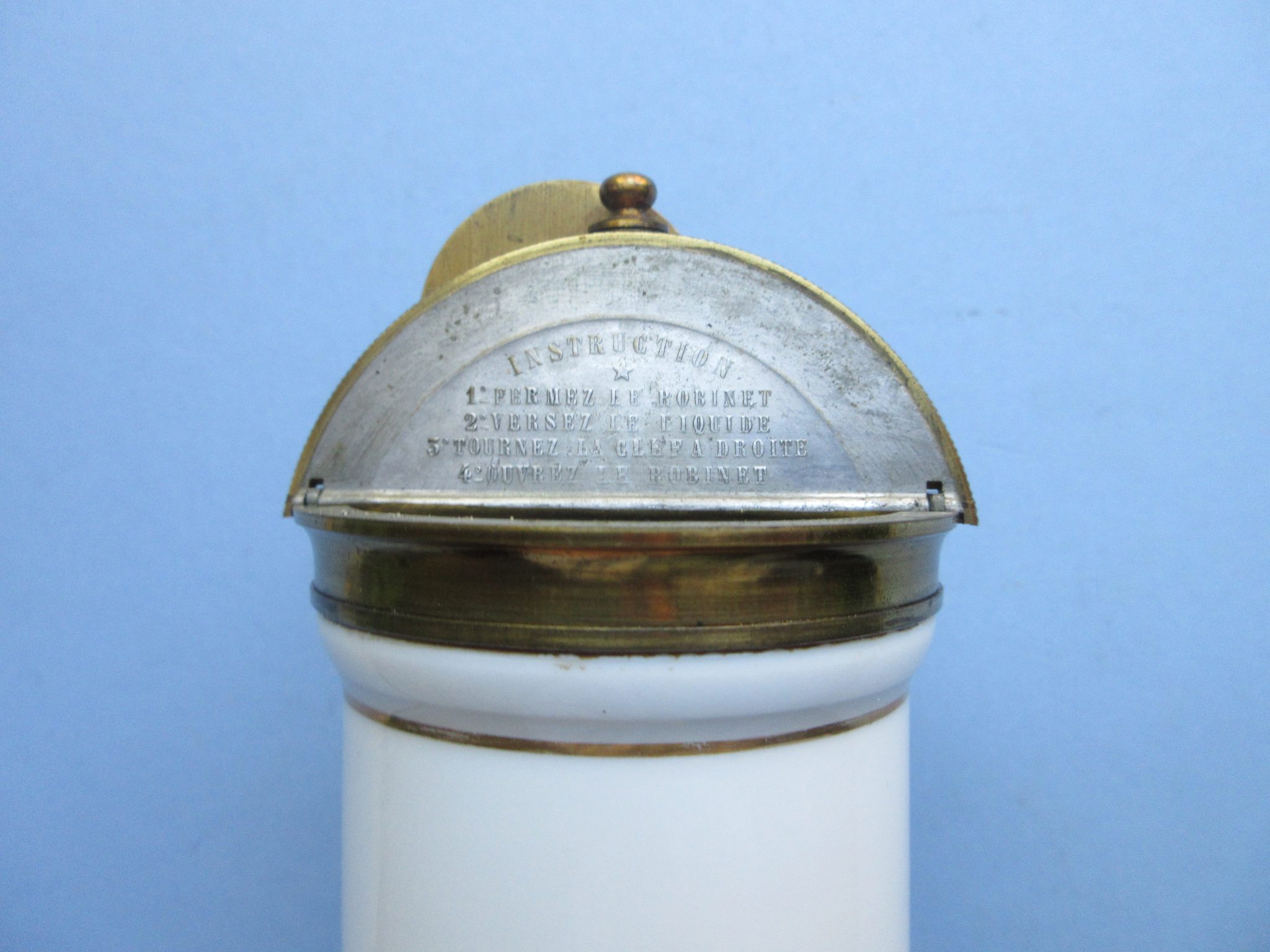 One of the most common contraceptive methods in the 19th century was the vaginal douche, ‘Irrigateur Eguisier’. It consisted of a cylindrical supply vessel made out of metal or porcellan, from which a rinsing fluid would pass through a controllable pump system to a hose. Thanks to the pump mechanism, the douche was independent of gravity and water pressure was easily controlled.