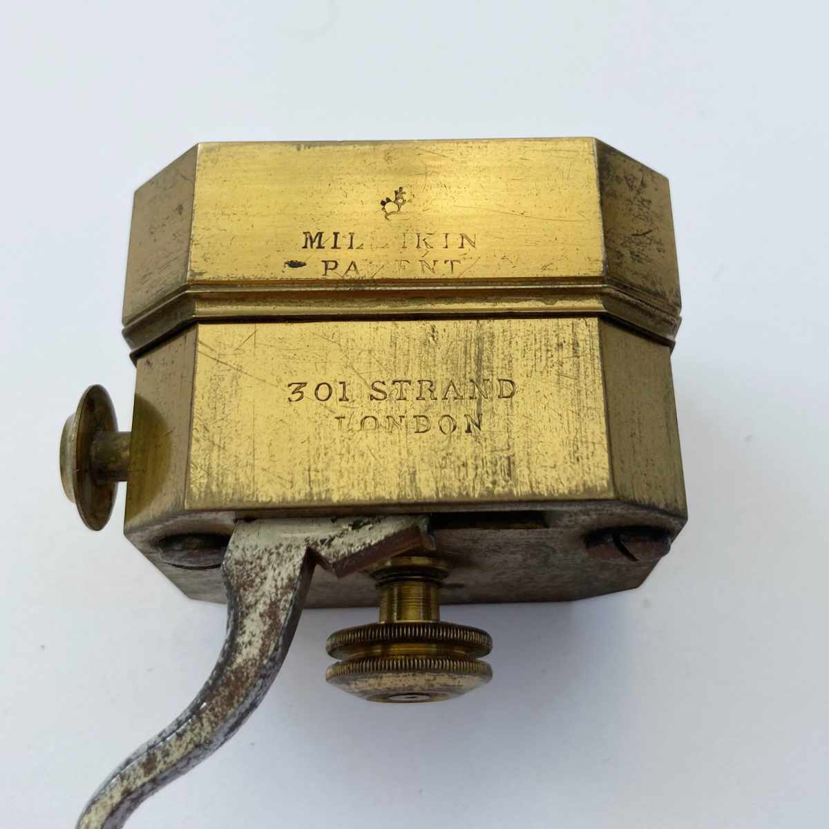 The maker John Millikin founded his medical instrument business in 1815 at 301 The Strand. Little is known of his trading years although he must have been a maker of some standing since he received a silver medal from The Royal Society for an improved bistoury knife. His patent reference was I suspect some artistic licence as his name fails to appear in patent indexes up to 1852.
