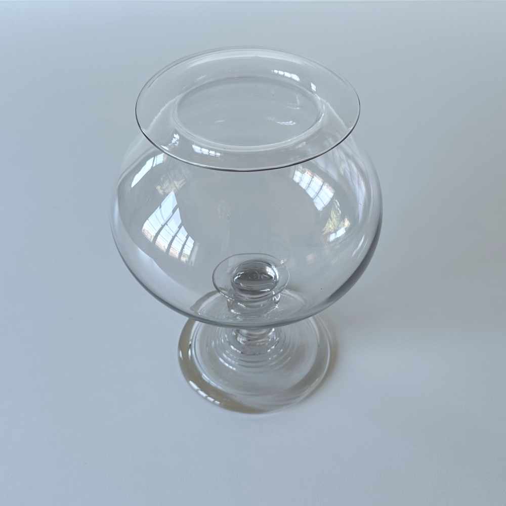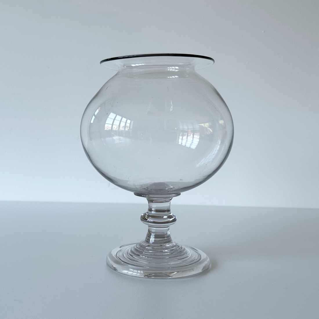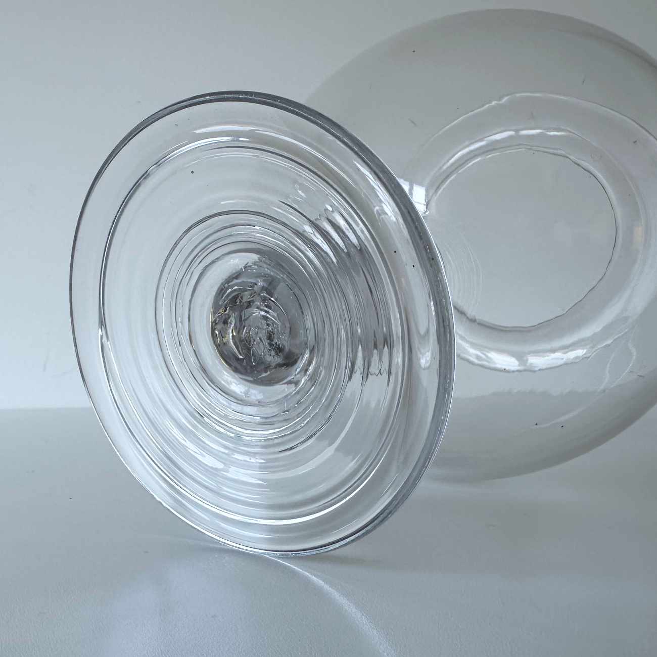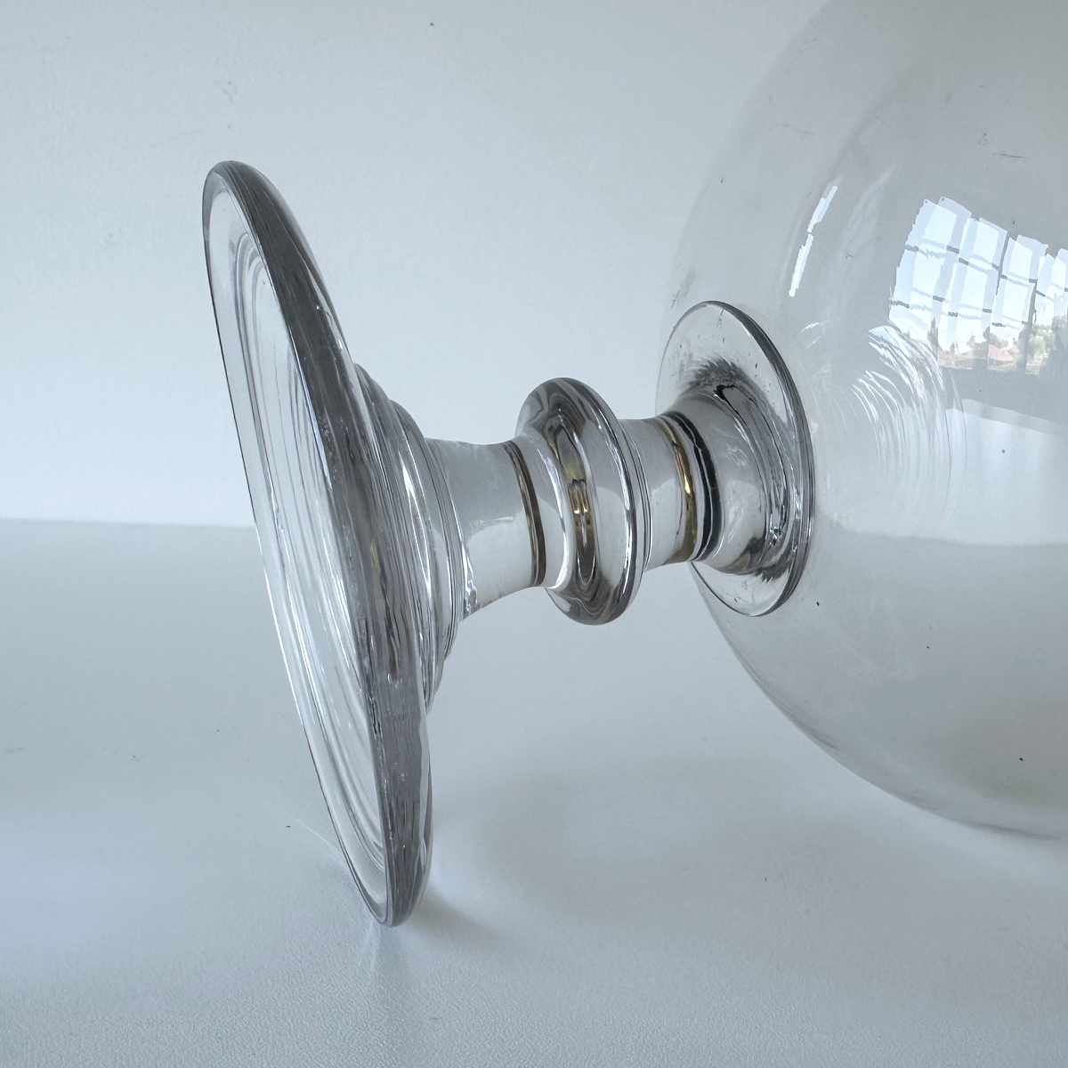 Completely undamaged, this rare survivor consists of a glass bowl with folded outswept rim with a capstan stem and pontil mark to the base indicating its early origins.