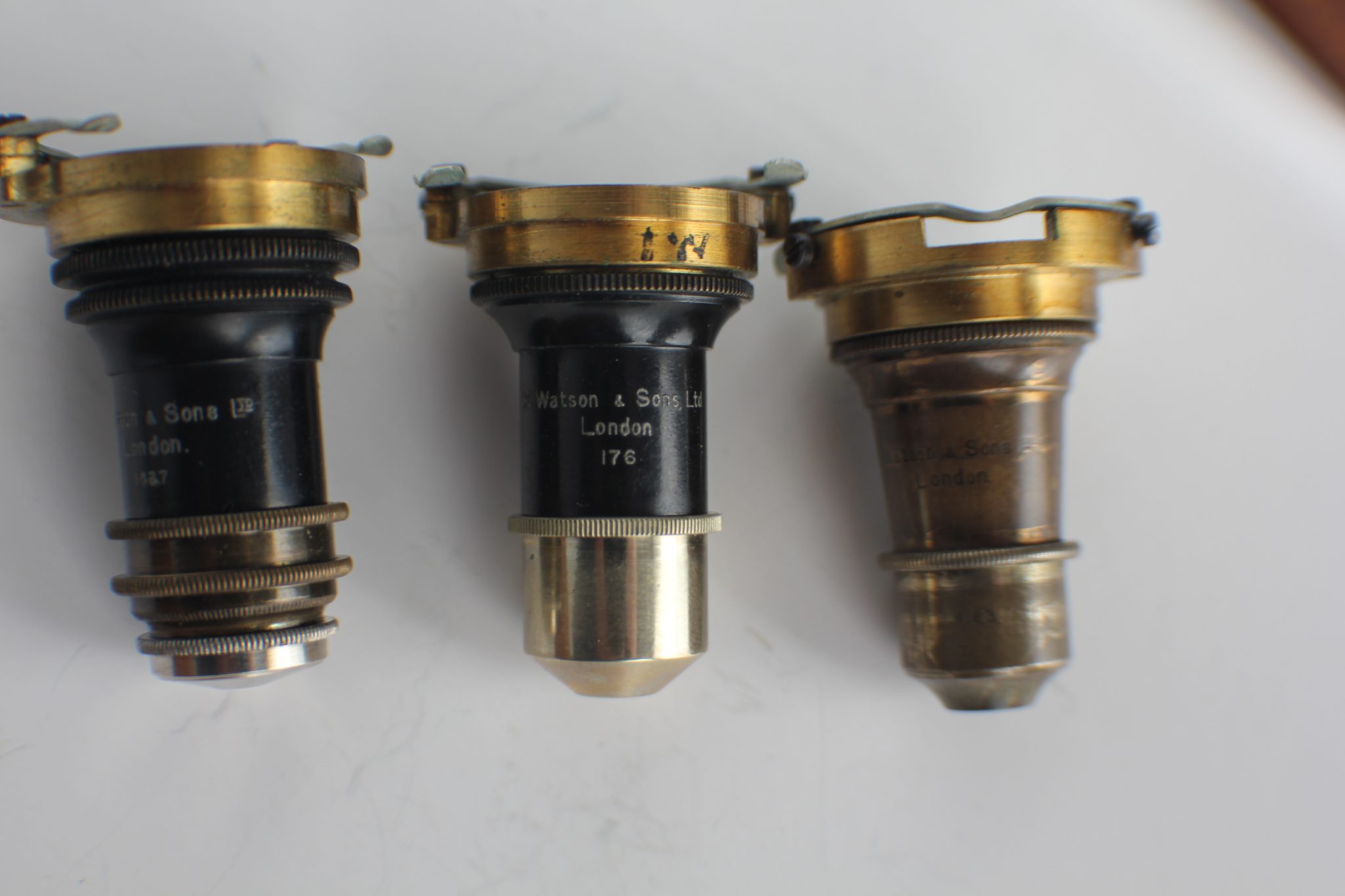 All Watson and Son, London with flanges only used on an English model with the appropriate nosepiece adapter.