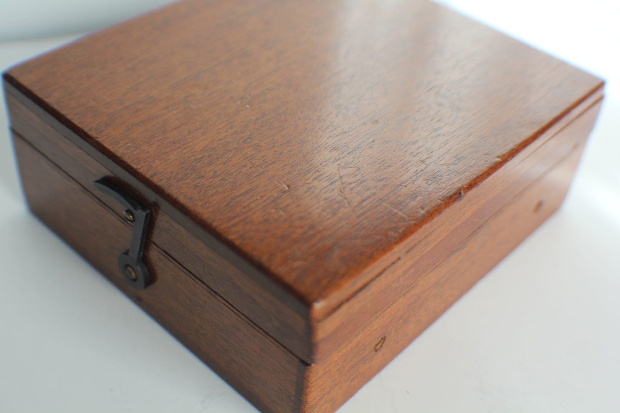 A good cased set of Watson centerable objectives in original mahogany case with two large English hooks measuring 12 x 11 x 4 cm.