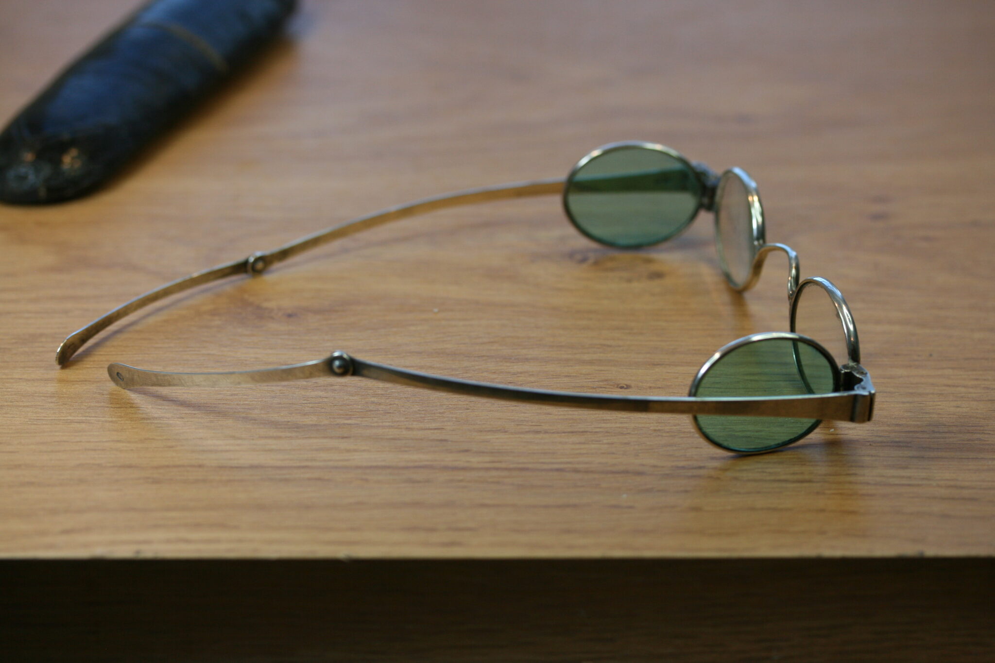 CONVEX CLEAR FRONT LENS , WITH NO POWER GREEN TINTED SIDE SHIELD LENSES