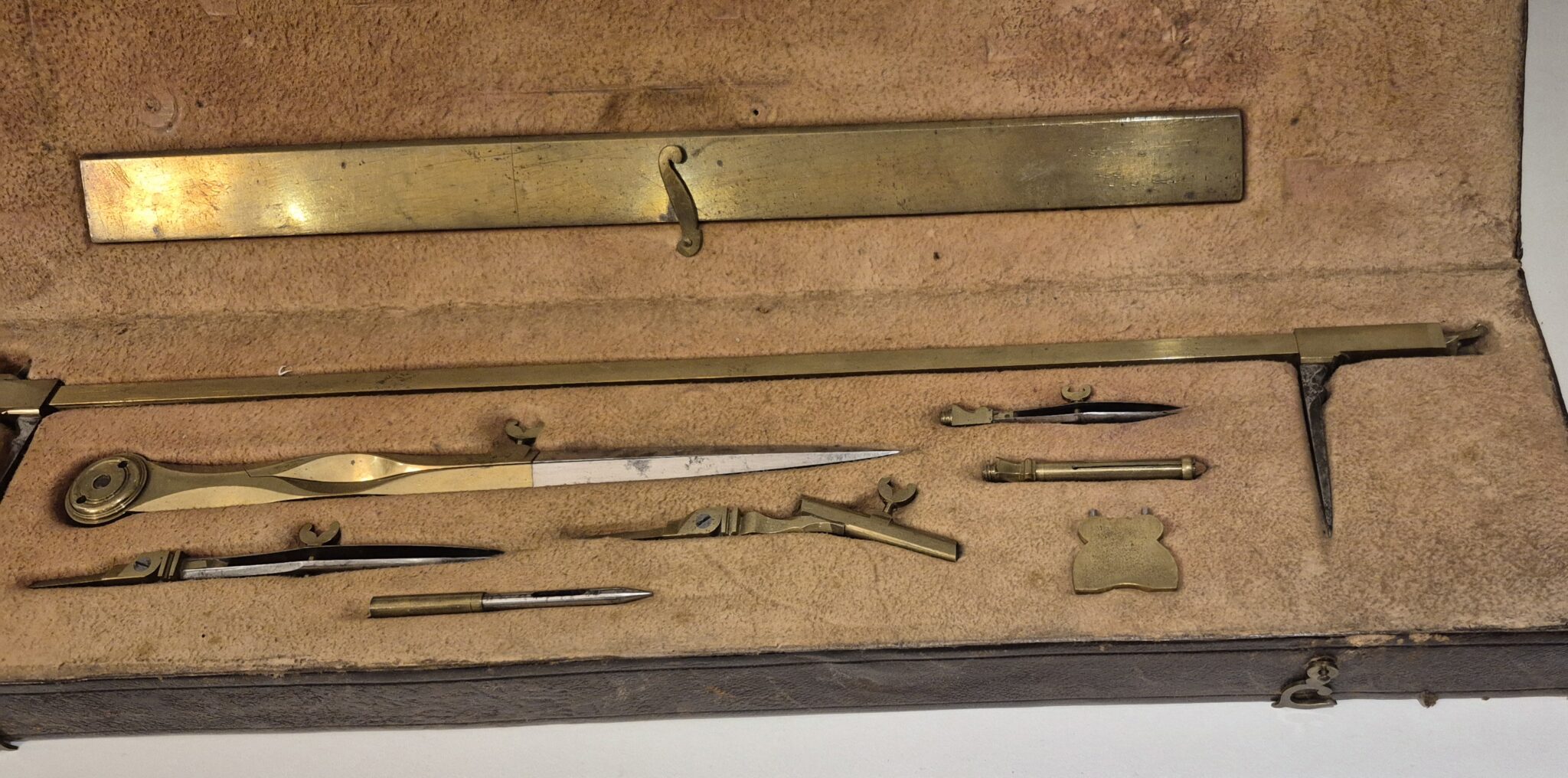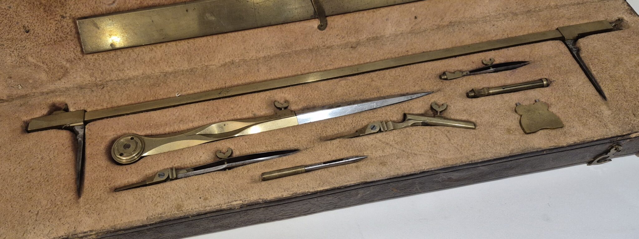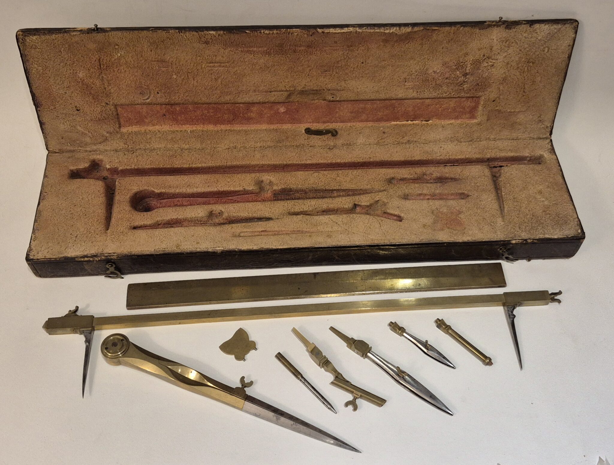 The beam compass measures 40cm lenght and the large pair of dividers 20,5cm lenght.