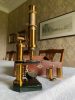 Lovely antique mid-Victorian period example of a large monocular brass bar-limb microscope by quality London makers C. Baker. This model is known as the No. 2 Compound Microscope.