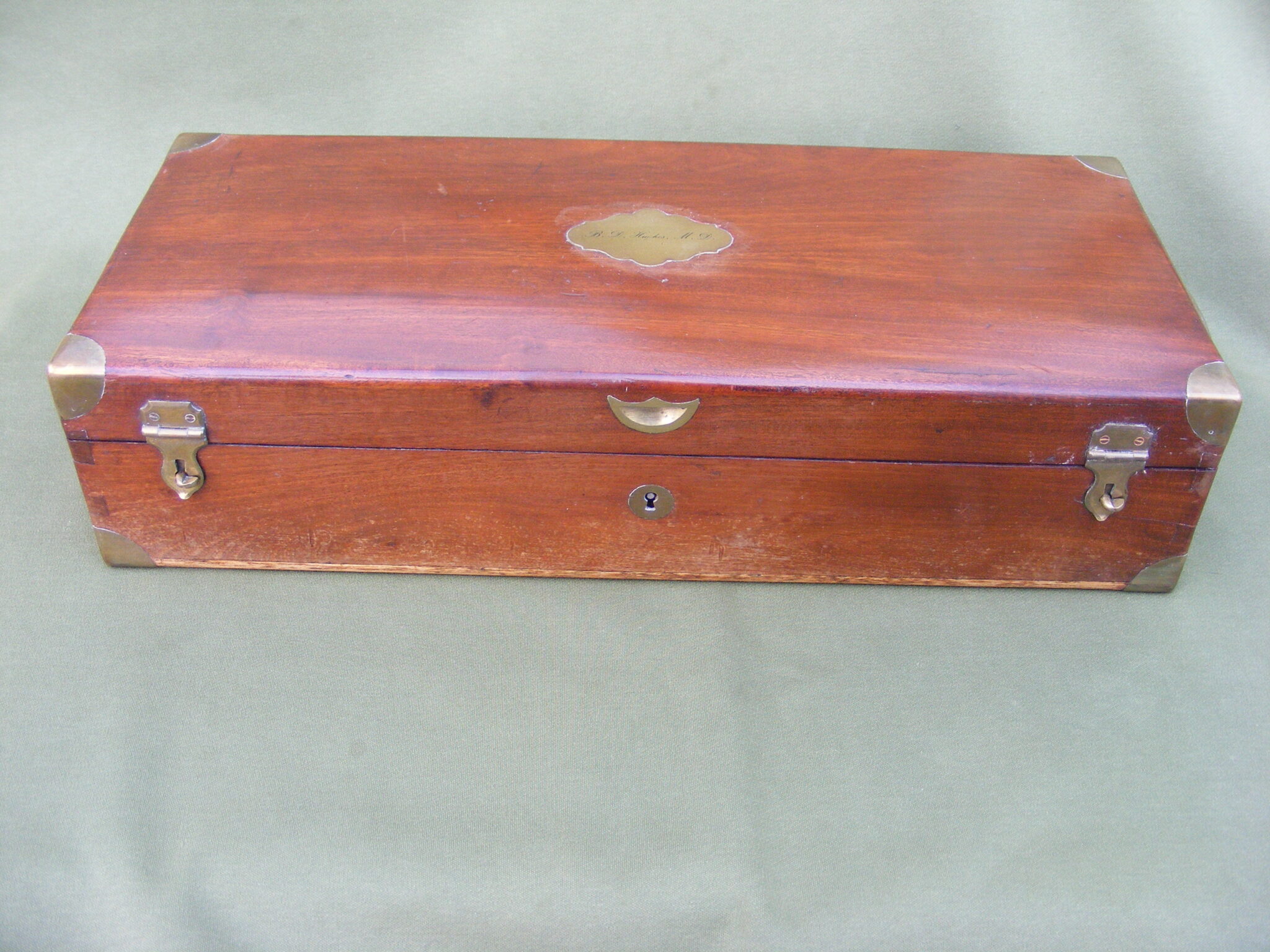 THREE SAWS, NICE CONDITION, THE CASE IS LINED WITH RED BUCKSKIN. CARTOUCHE ON LID: B. D. HUGHES M.D.