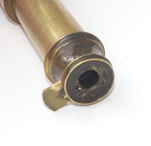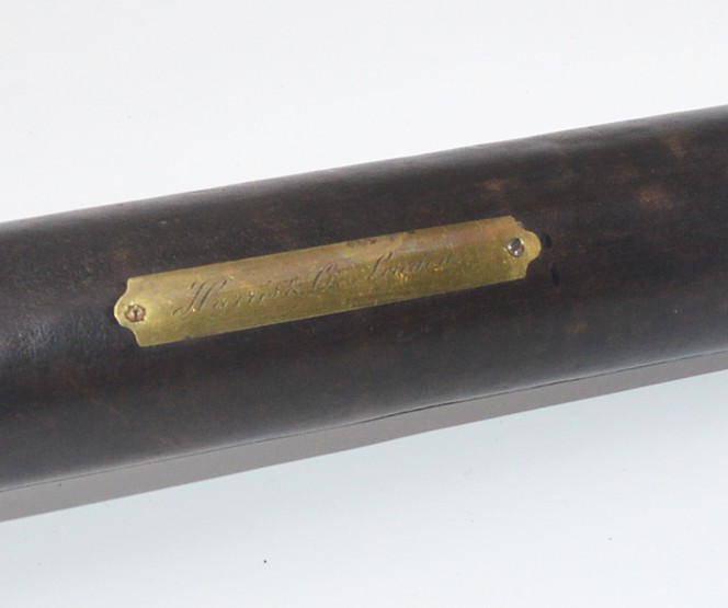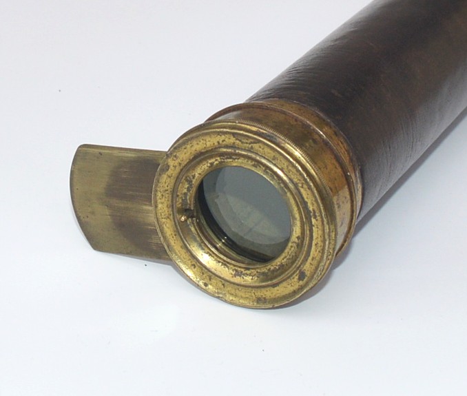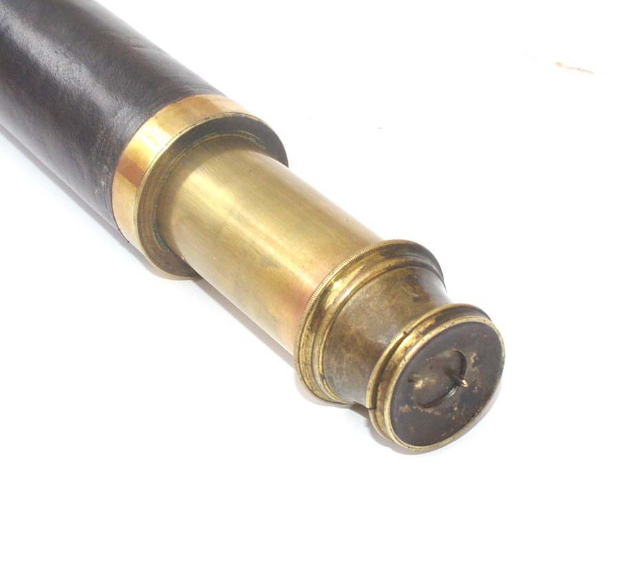 A single draw marine telescope with a leather covered barrel with attached brass badge reading, ‘Harris & Co, London’. The company worked from 1813 – 1839.