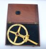 A good variation of microscope accessories in case, not quite complete. Note some staining to the small live box. The compressor is lacking the cover slip glass.