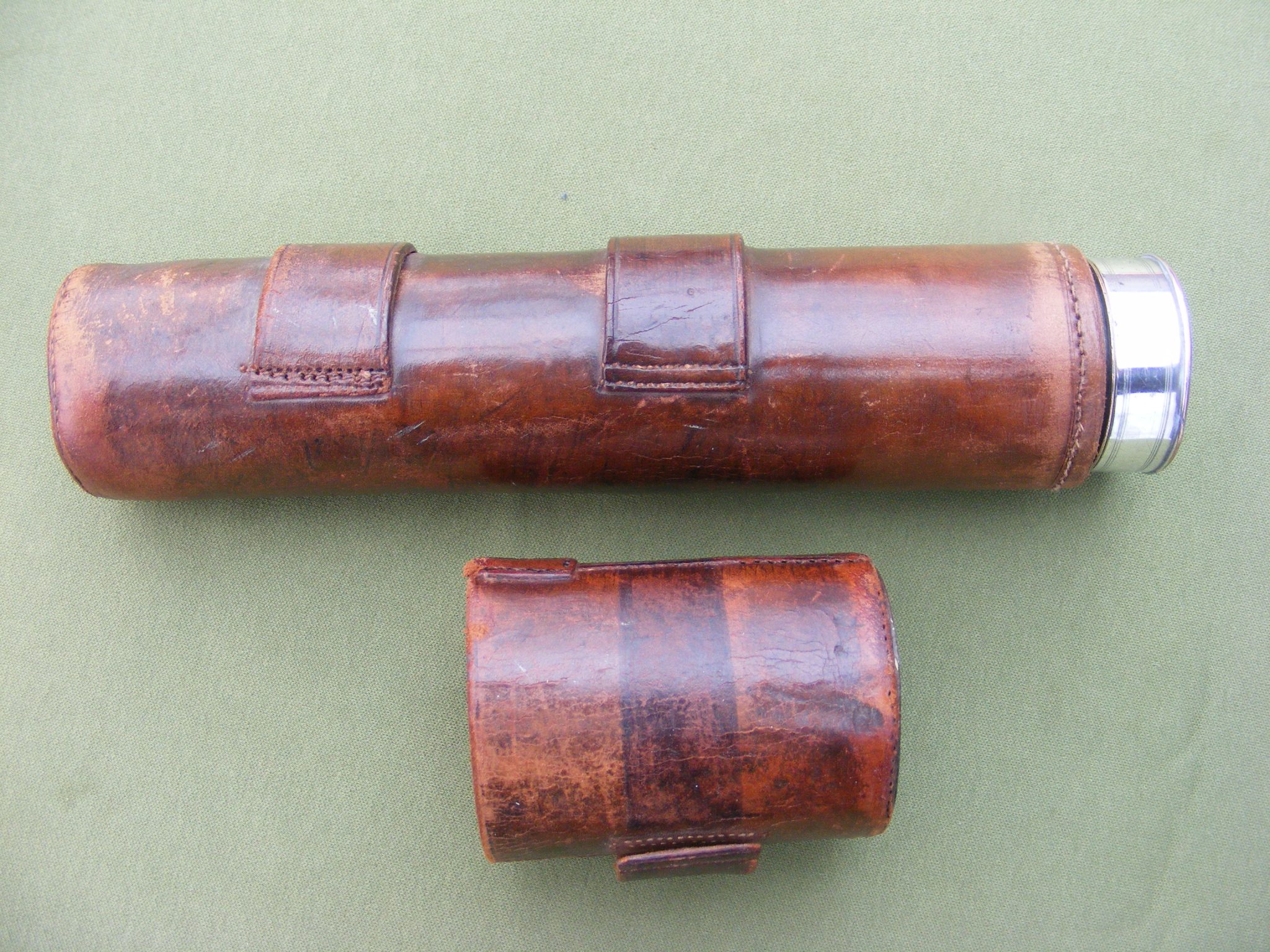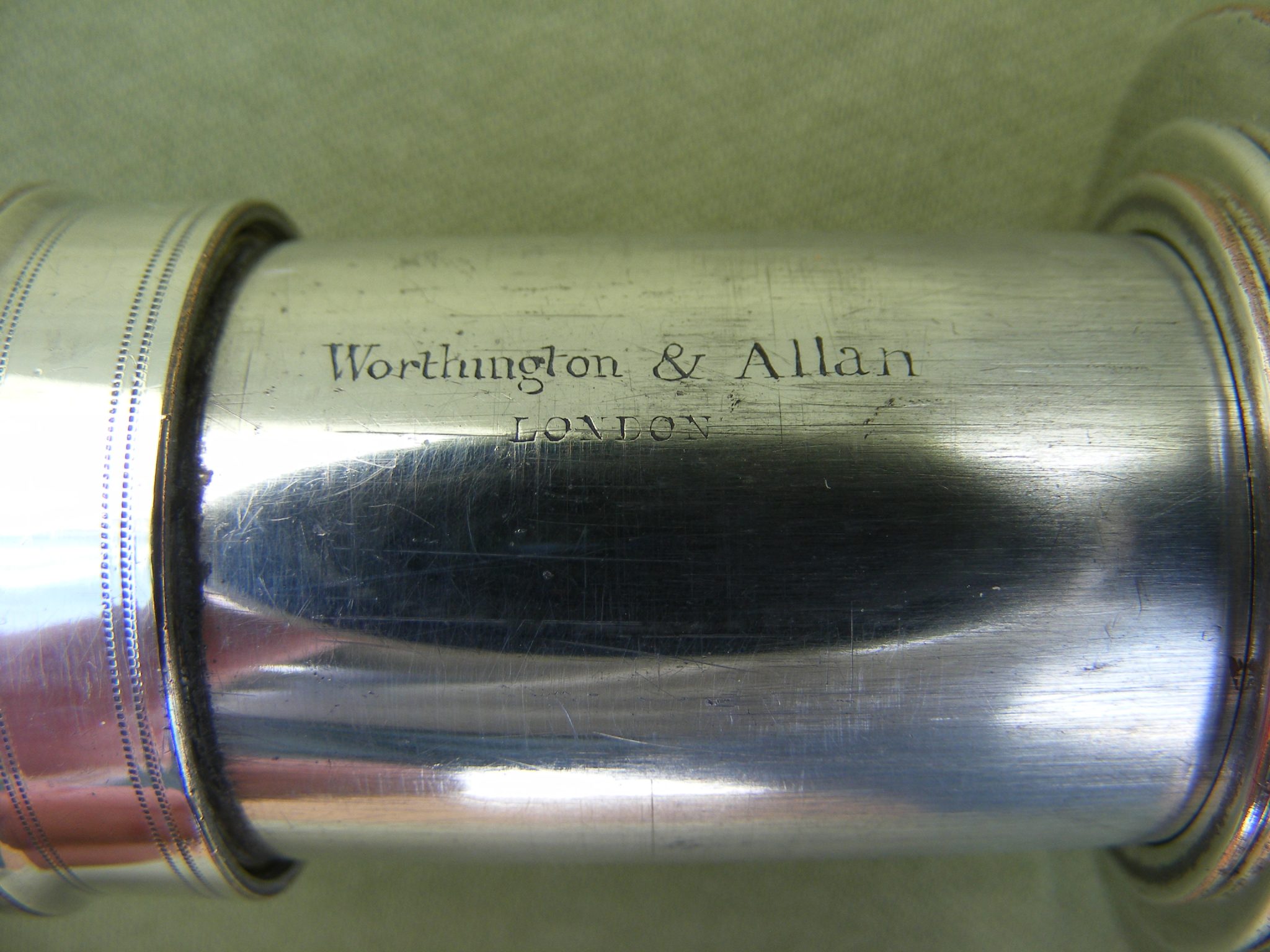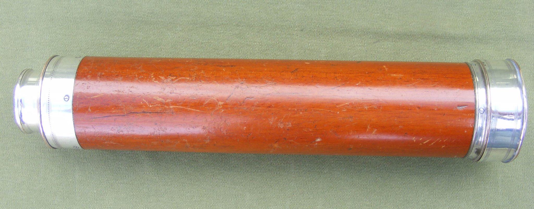 EARLY 19TH CENTURY OLD SHEFFIELD PLATE ( SILVER ON COPPER ) THREE DRAW TELESCOPE IN VERY GOOD CONDITION, 29" INCHES OPEN, 9.1/2" INCHES CLOSED, O.G. 1.9/16" INCHES DIA. GLASS SHOWING. SIGNED: WORTHINGTON & ALLAN. LONDON. MAHOGANY BARREL NO CRACKS, VERY GOOD IMAGE. USUAL FINE QUALITY ENGINE TURNING ALWAYS FOUND ON THESE LONDON MADE SILVER TELESCOPES. THERE IS A LEATHER CASE BUT A LITTLE TIRED. THE TWO LARGER DRAWS HAVE ARROWS TO INDICATE THEY ARE FULLY DRAWN.
